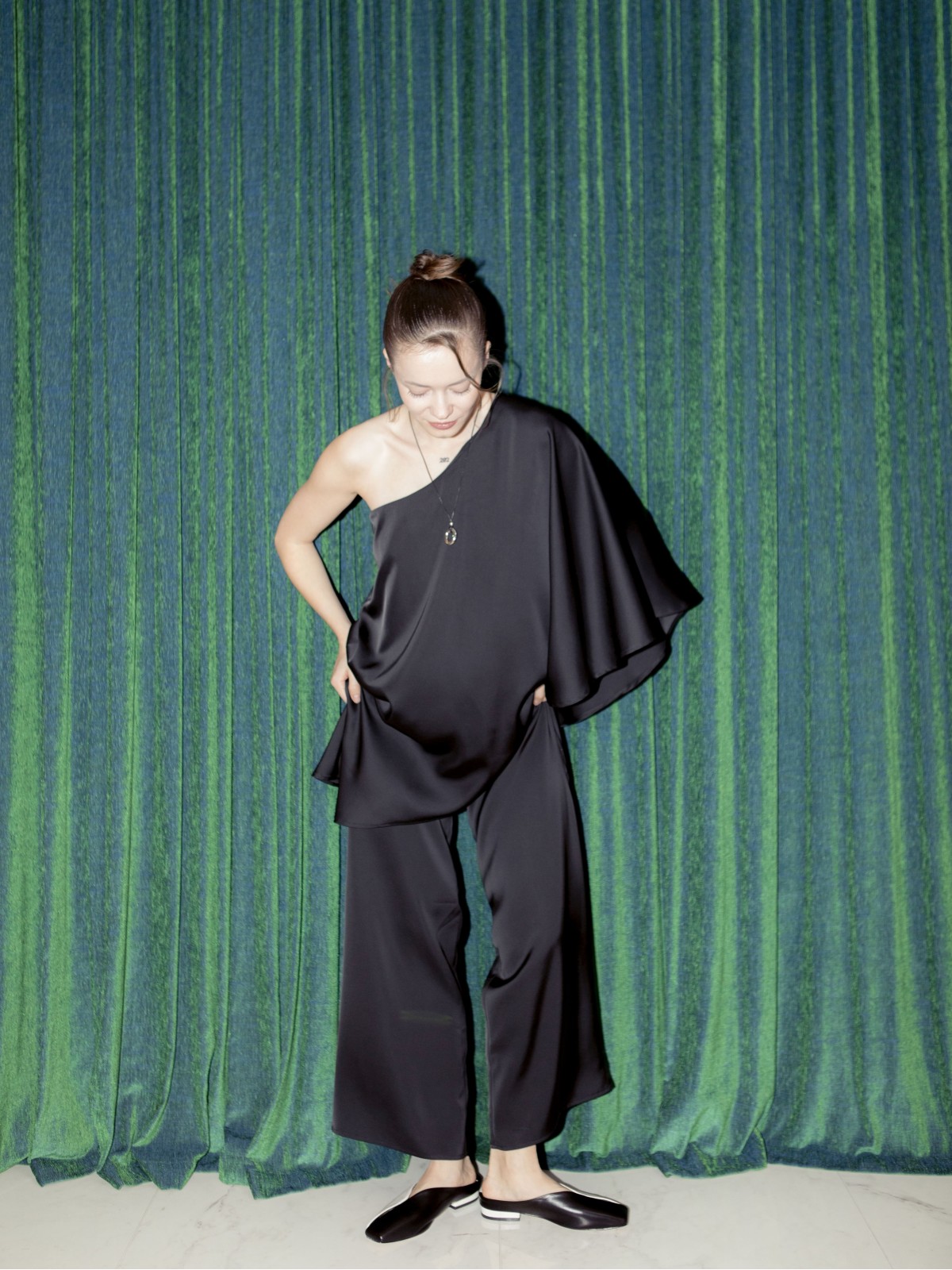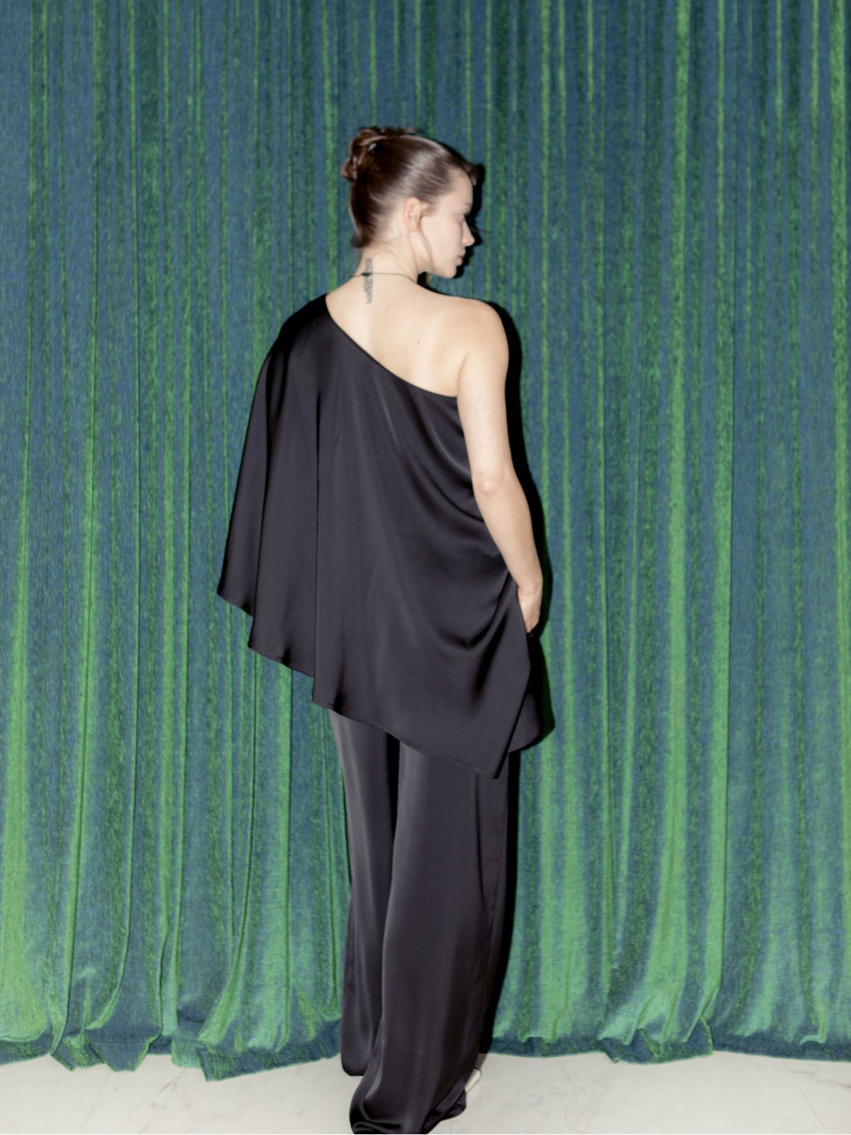 Шелковый топ на одно плечо. Яркий акцент твоего образа и дополнение к шелковым брюкам бренда из коллекции SILK