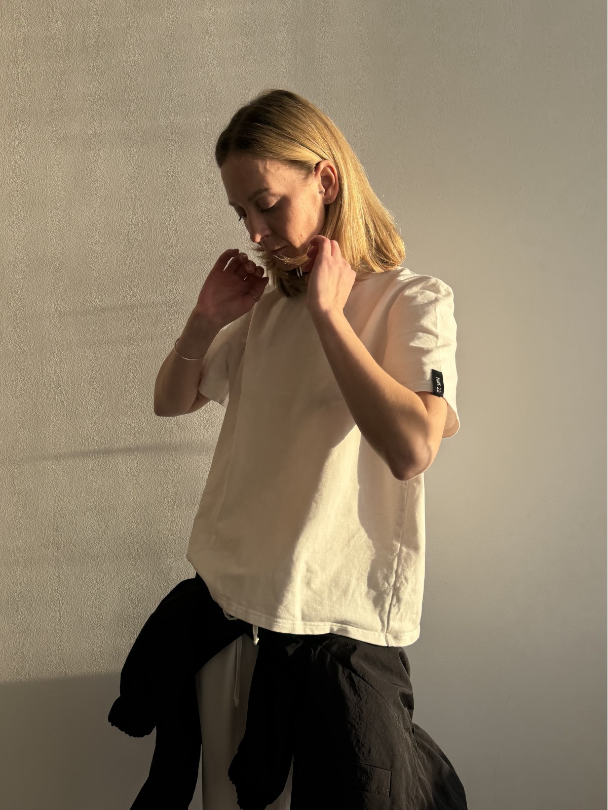 Укороченная футболка свободного кроя из мягкого хлопка. Идеально сидит, не сковывает движений и отлично сочетается с джинсами, юбками или спортивными брюками.