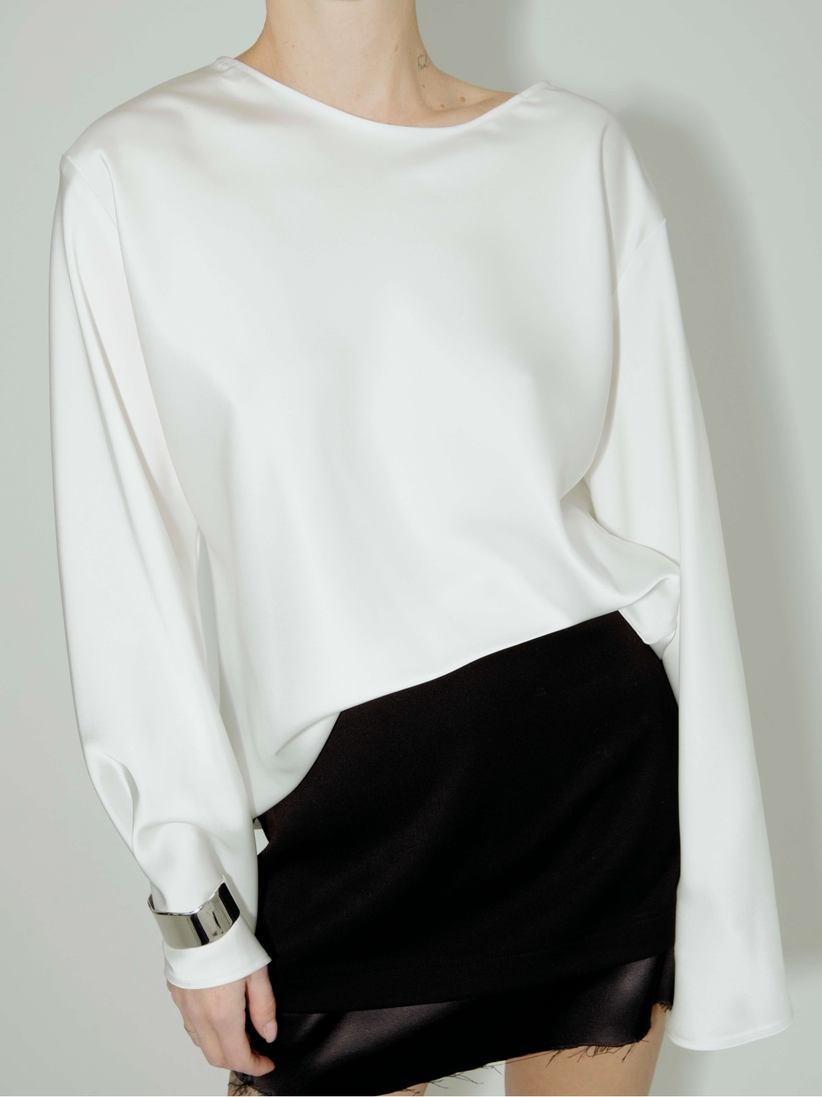 Лёгкий, струящийся и тактильно безупречный — шелковый лонгслив из новогодней коллекции создан как базовая вещь с ощущением роскоши. Чистый силуэт и мягкая линия плеч делают его универсальным элементом гардероба: он одинаково органично смотрится как в расслабленных дневных образах, так и в более собранных вечерних сочетаниях.