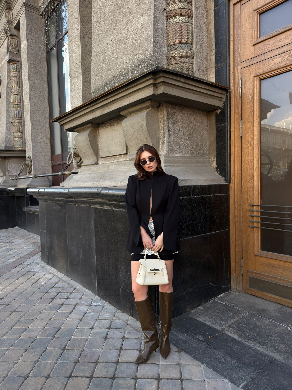 Структурный жакет IDOL с архитектурным силуэтом — минимализм, который говорит сам за себя. Чёткая линия плеч, удлинённый крой и мягко очерченная талия создают эффект собранного, но расслабленного образа. Глубокий V-вырез добавляет дерзости и визуально вытягивает силуэт, а лаконичный дизайн без лишних деталей делает модель универсальной базой.