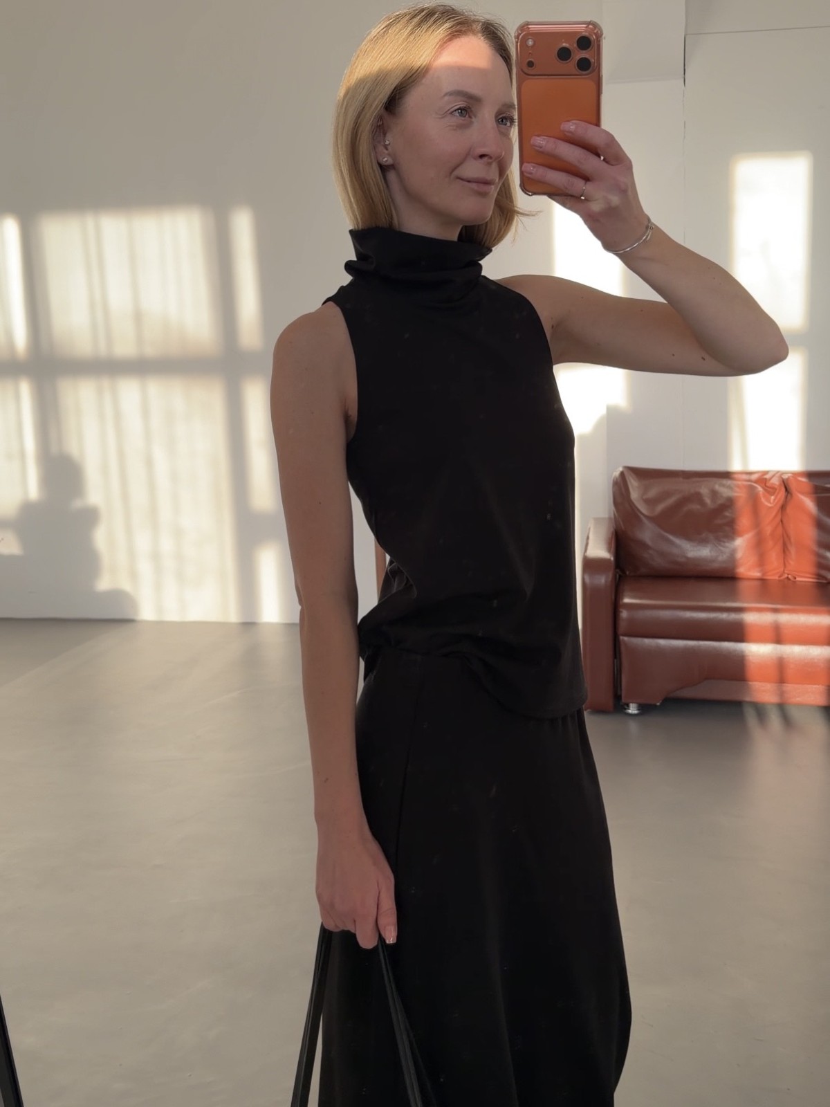 Можно носить как монообраз или стилизовать с другими позициями в вашем гардеробе — чёрный цвет легко адаптируется под любой стиль и настроение.