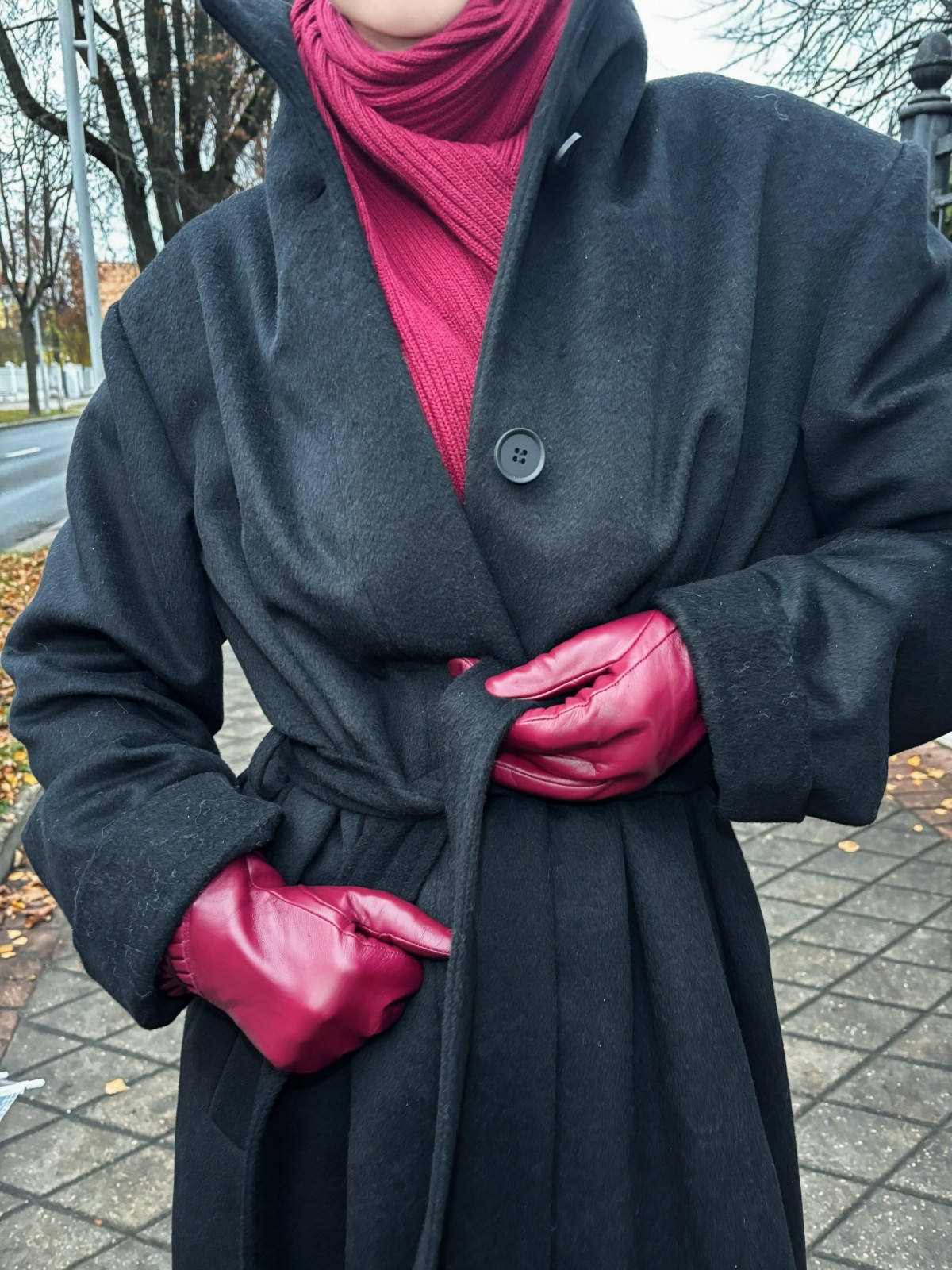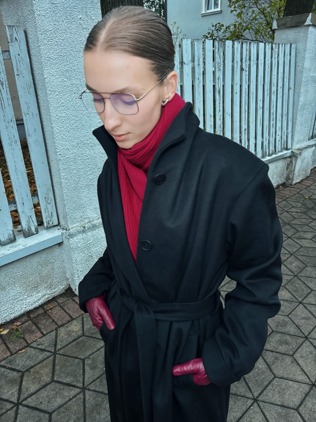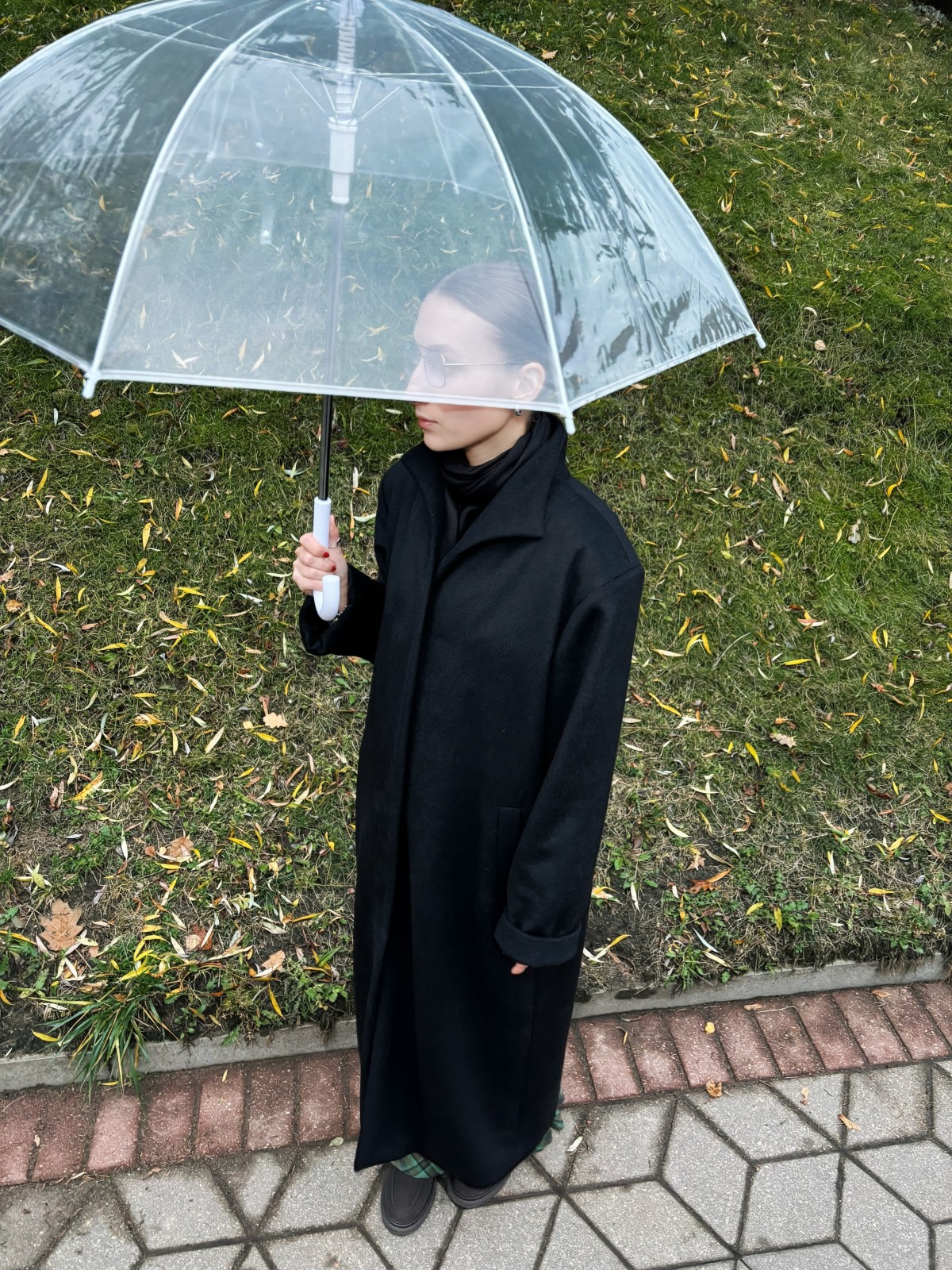Минималистичное пальто прямого силуэта с мягкой линией плеча и высоким воротником. Плотная шерстяная ткань держит форму, но остаётся пластичной в движении.