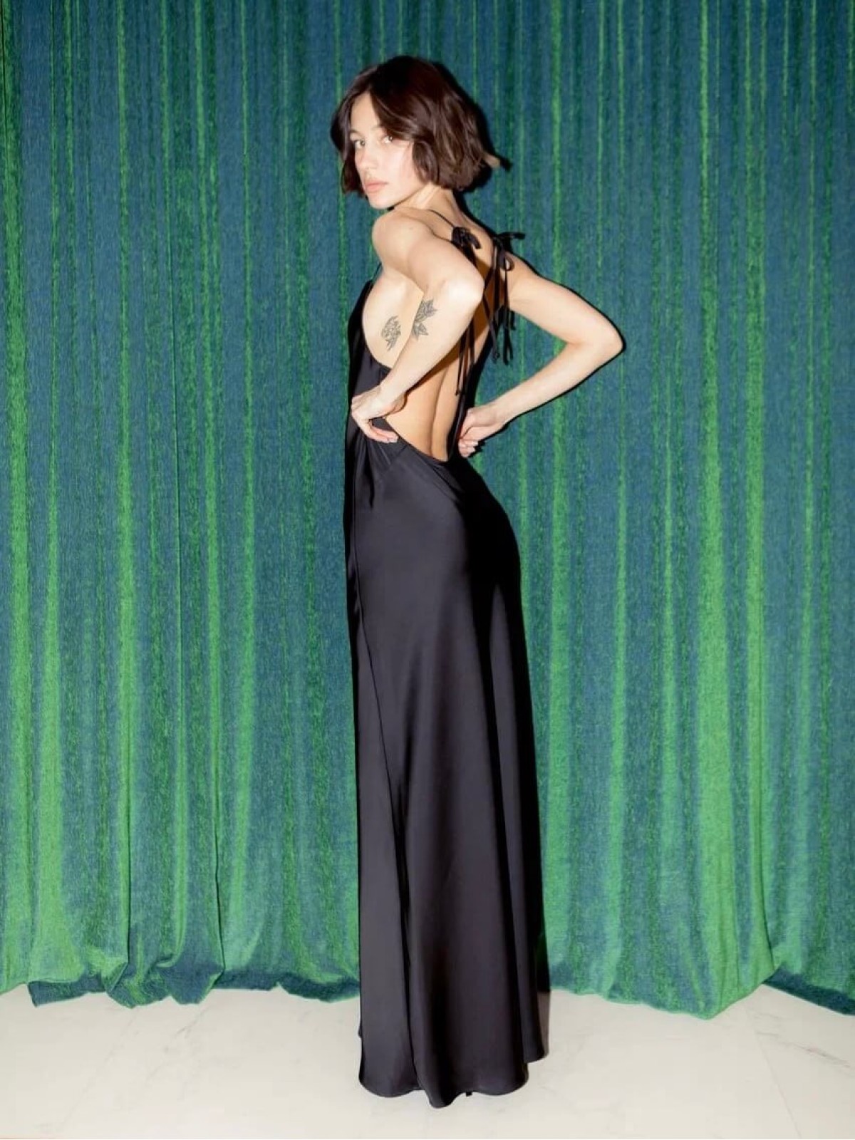 Струящееся платье-макси на тонких регулируемых бретелях с ниспадающим мягким вырезом и открытой спинкой. Нейтральный принт и мягкая ткань.