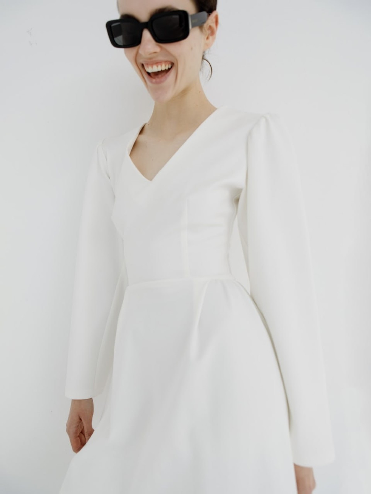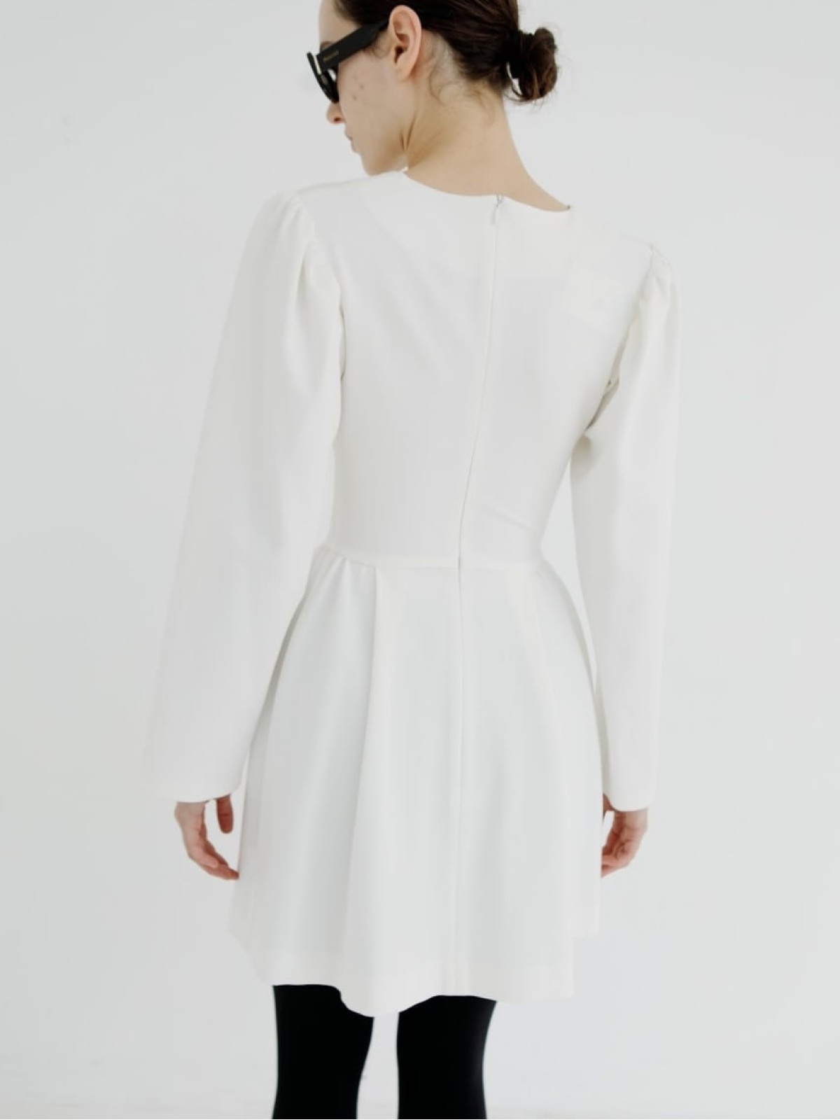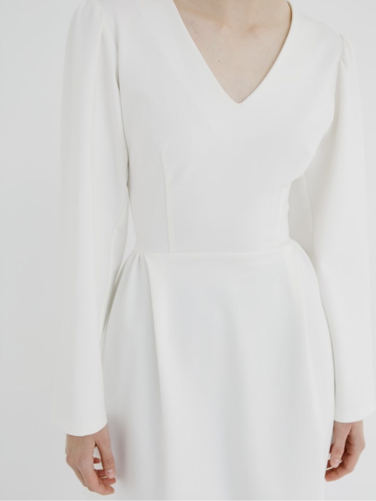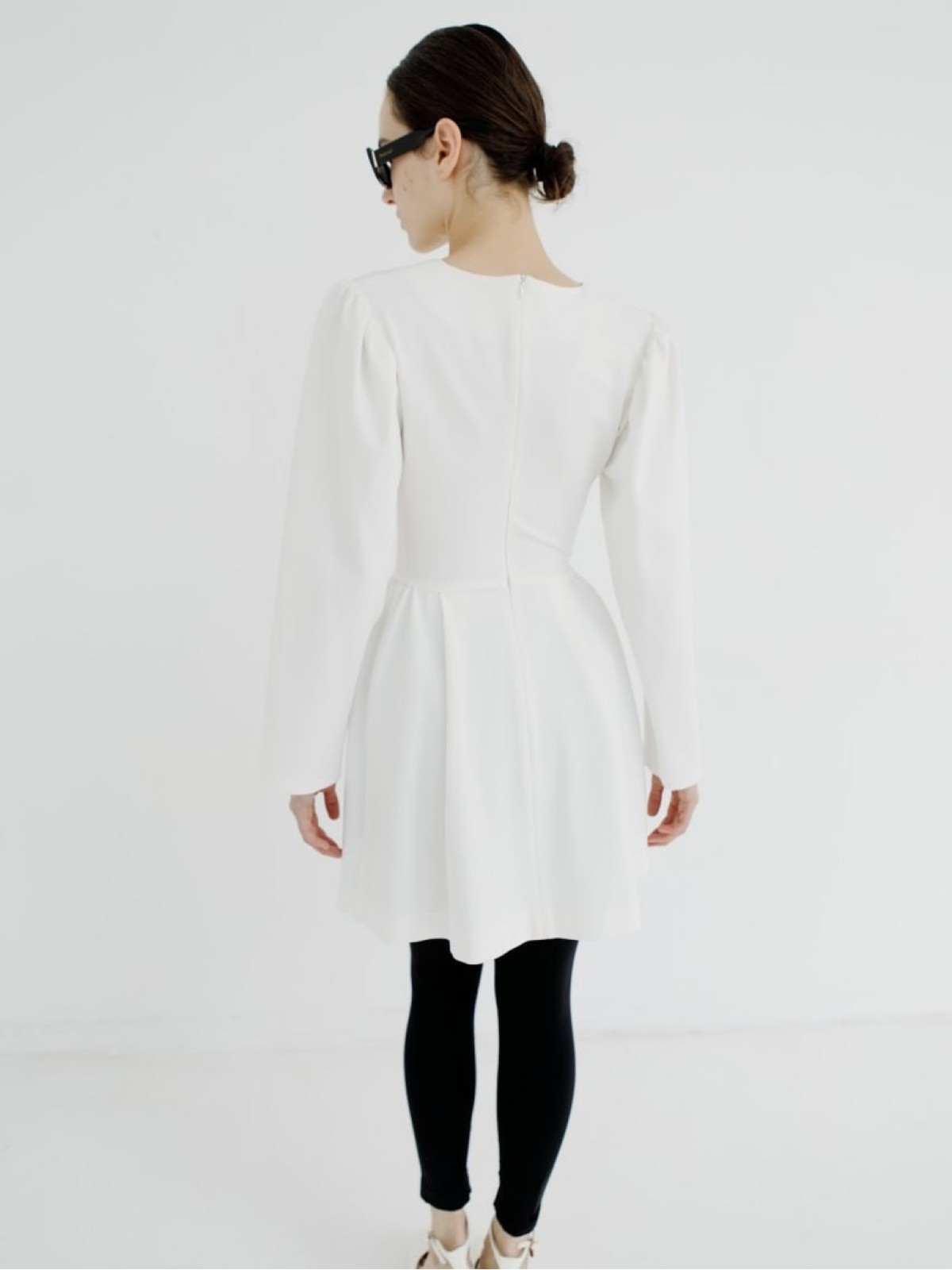 Новинка осенней коллекции бренда — молочное платье COCO c акцентированной линией плеча.