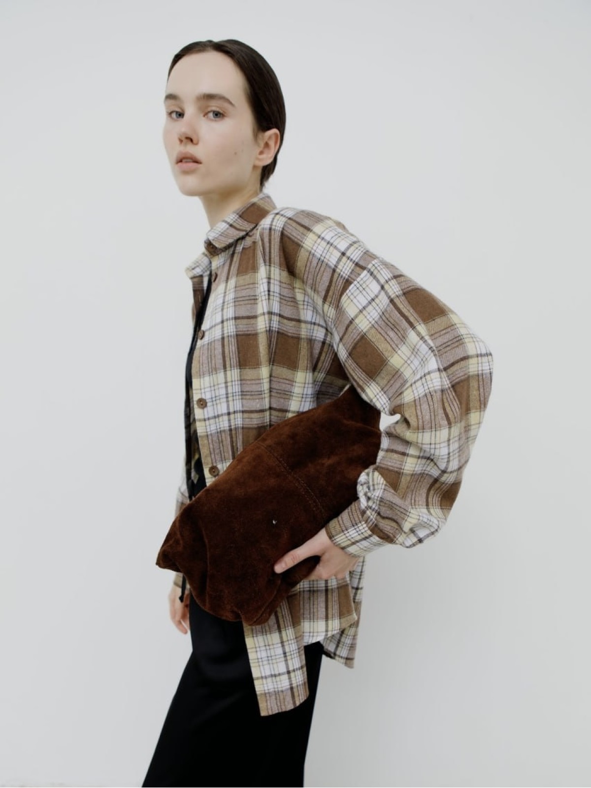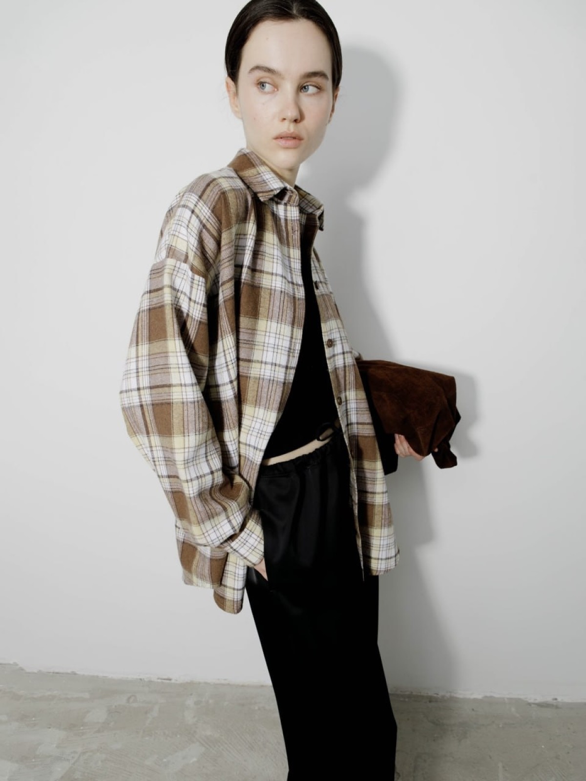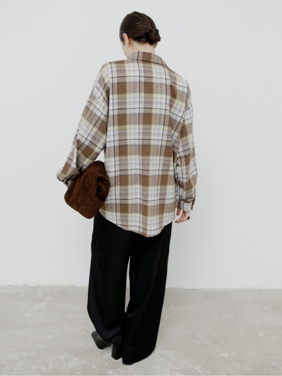 Оверсайз рубашка мужского кроя из легкой фланелевой ткани в клетку.