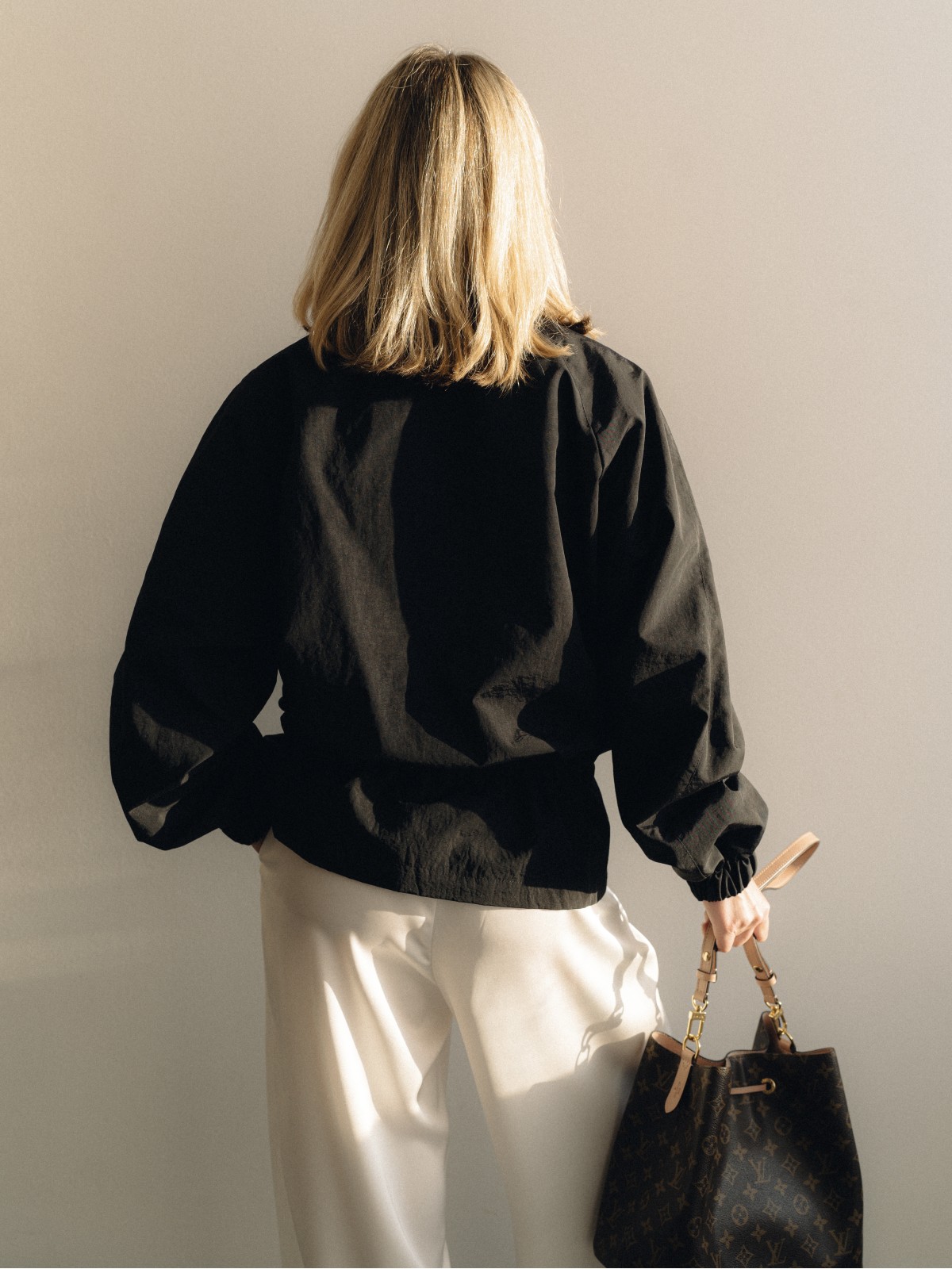 Лёгкая ветровка прямого оверсайз силуэта. Мягкая сборка создаёт женственную форму, сохраняя ощущение свободы и комфорта. Универсальная модель для города, межсезонья и активных дней.