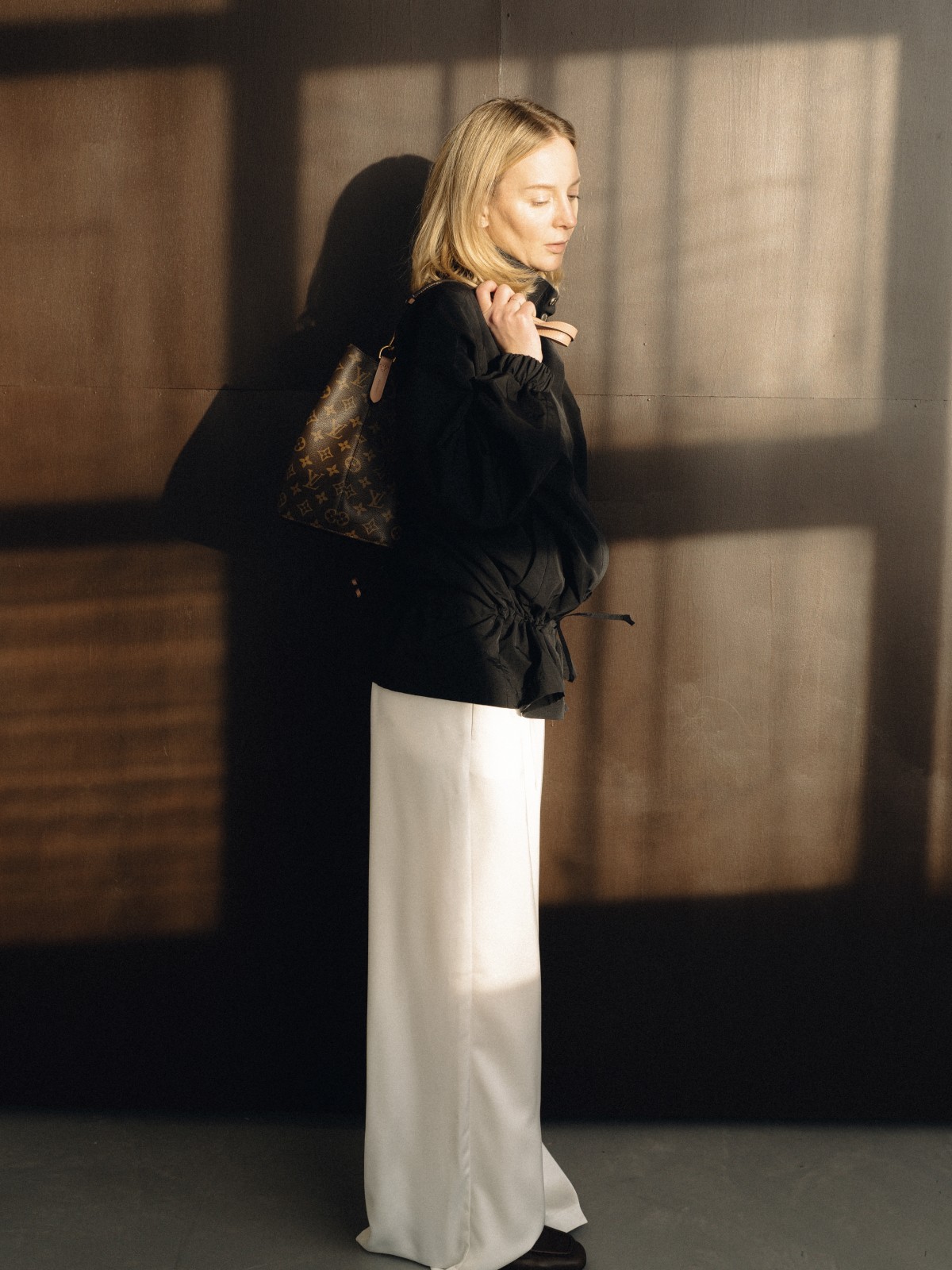 Ветровка легко вписывается в повседневные образы: с брюками, джоггерами, юбками и трикотажными комплектами. Минималистичный дизайн делает её базой, к которой хочется возвращаться.