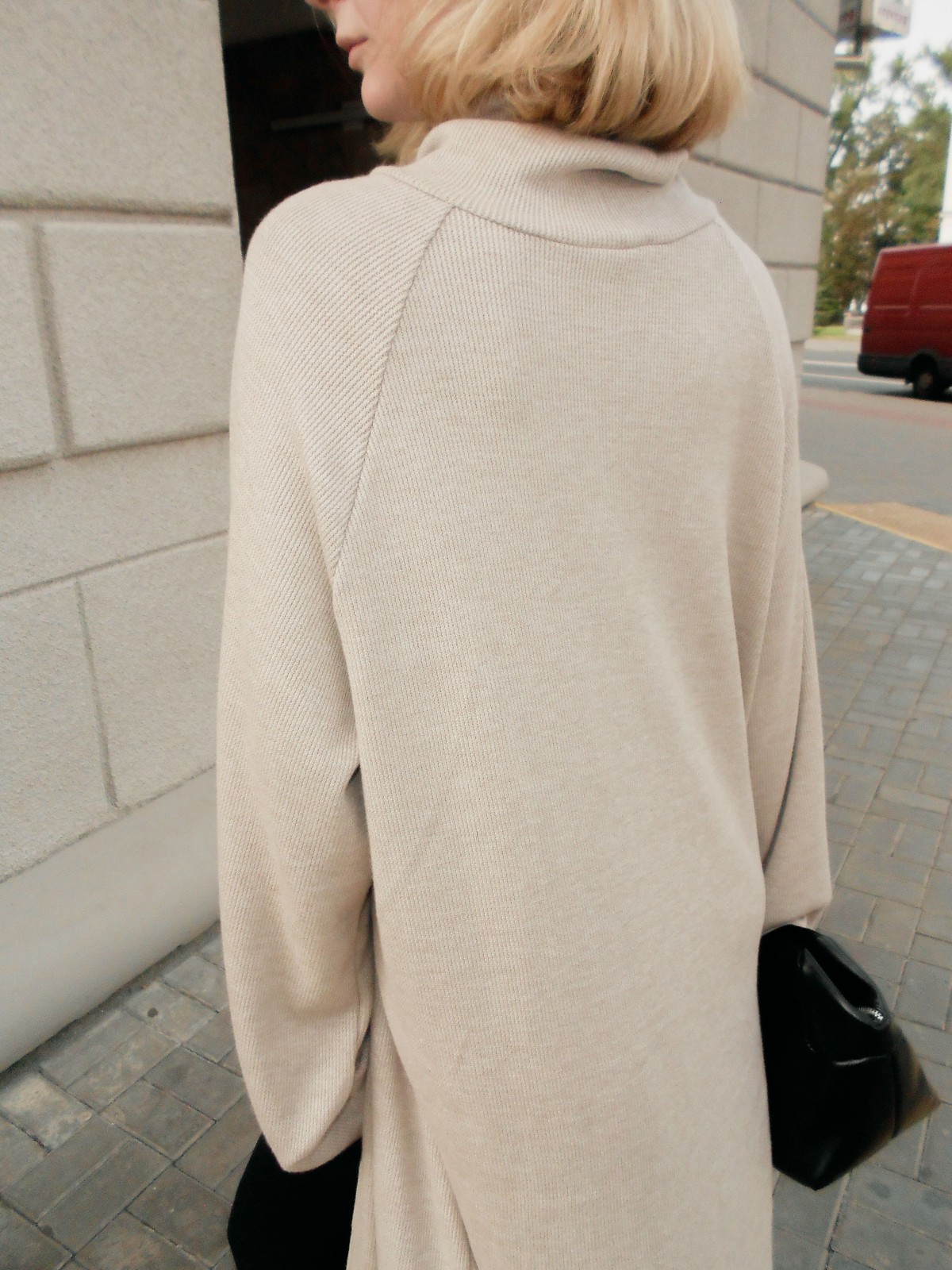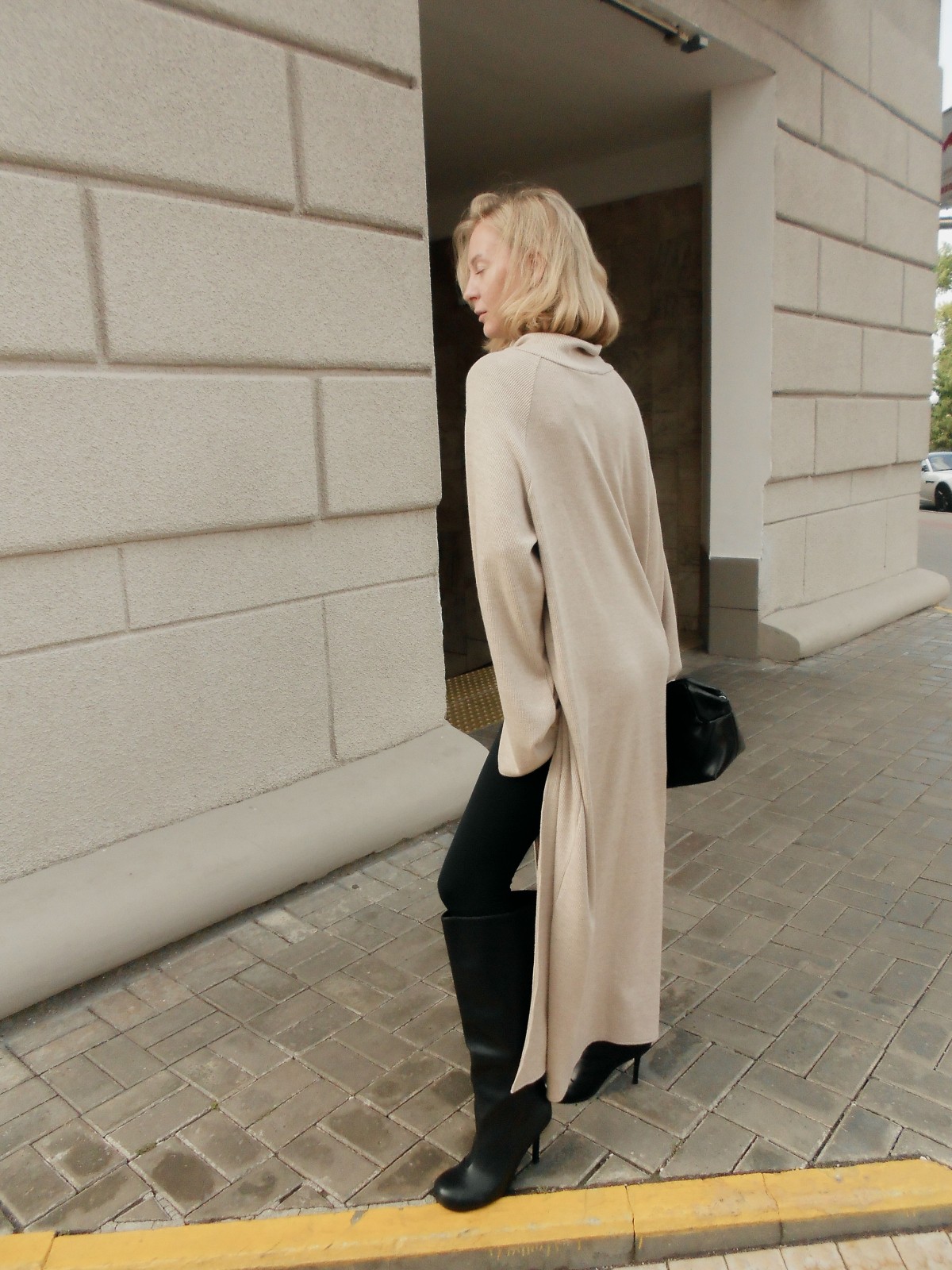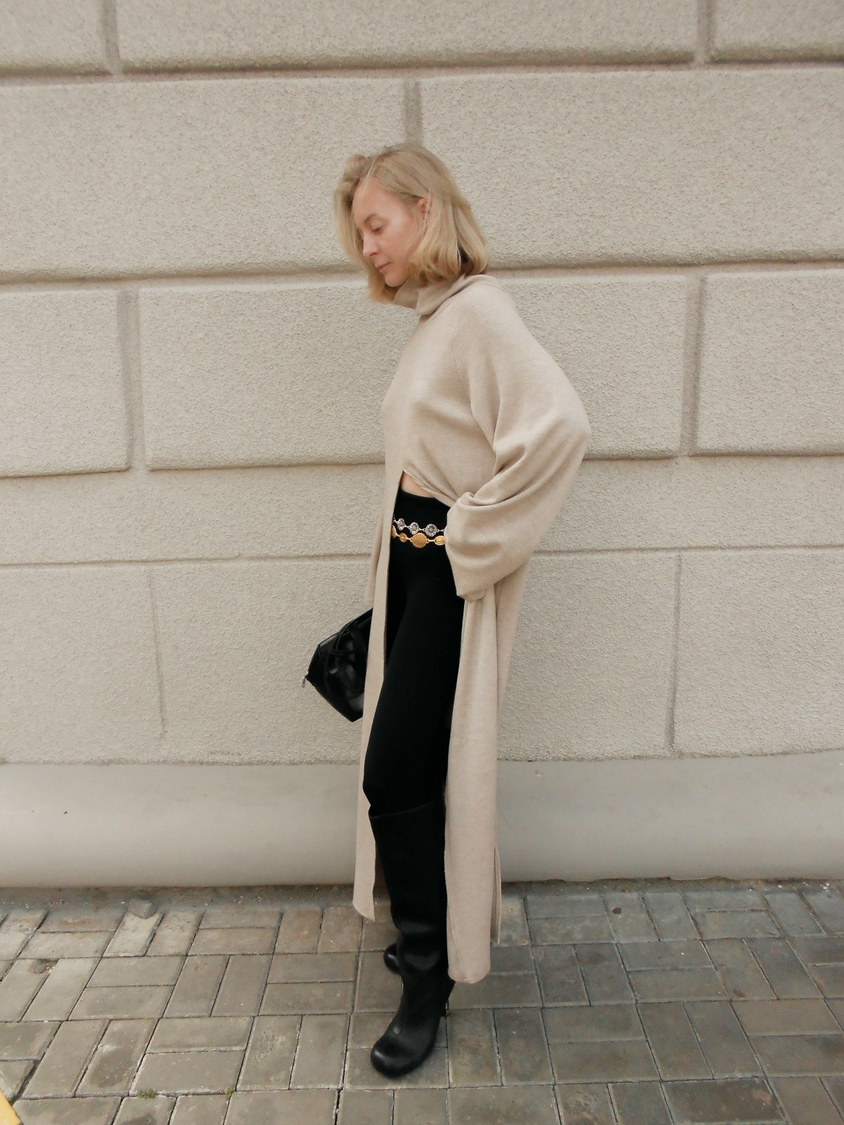 Новинка осенней коллекции бренда — удлиненный свитер с акцентным разрезом из мягкой и уютной трикотажной ткани