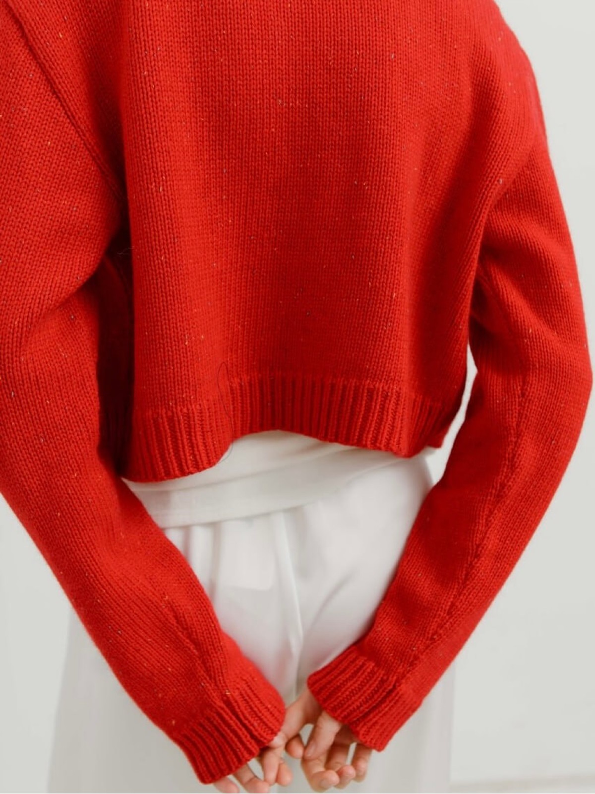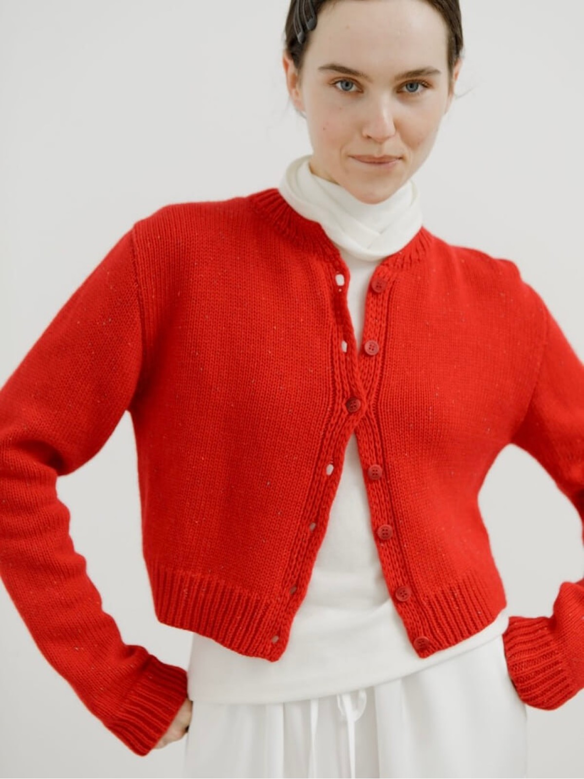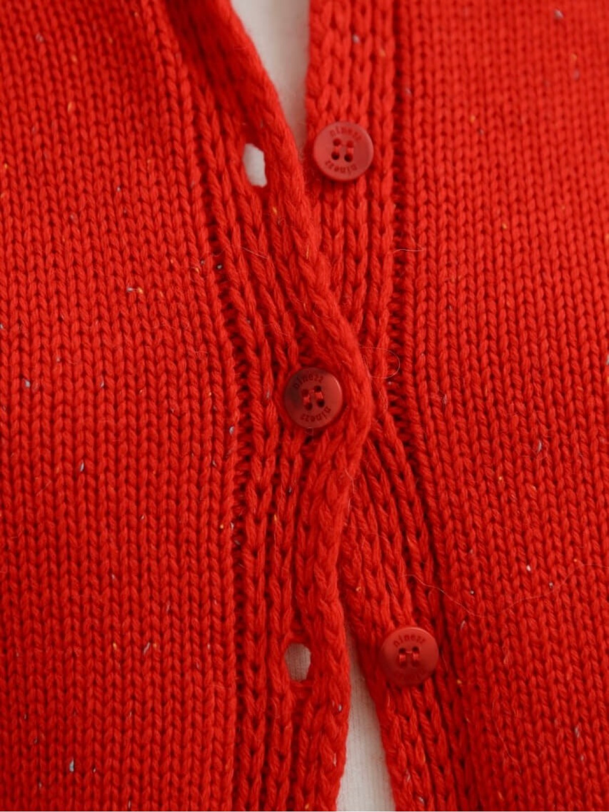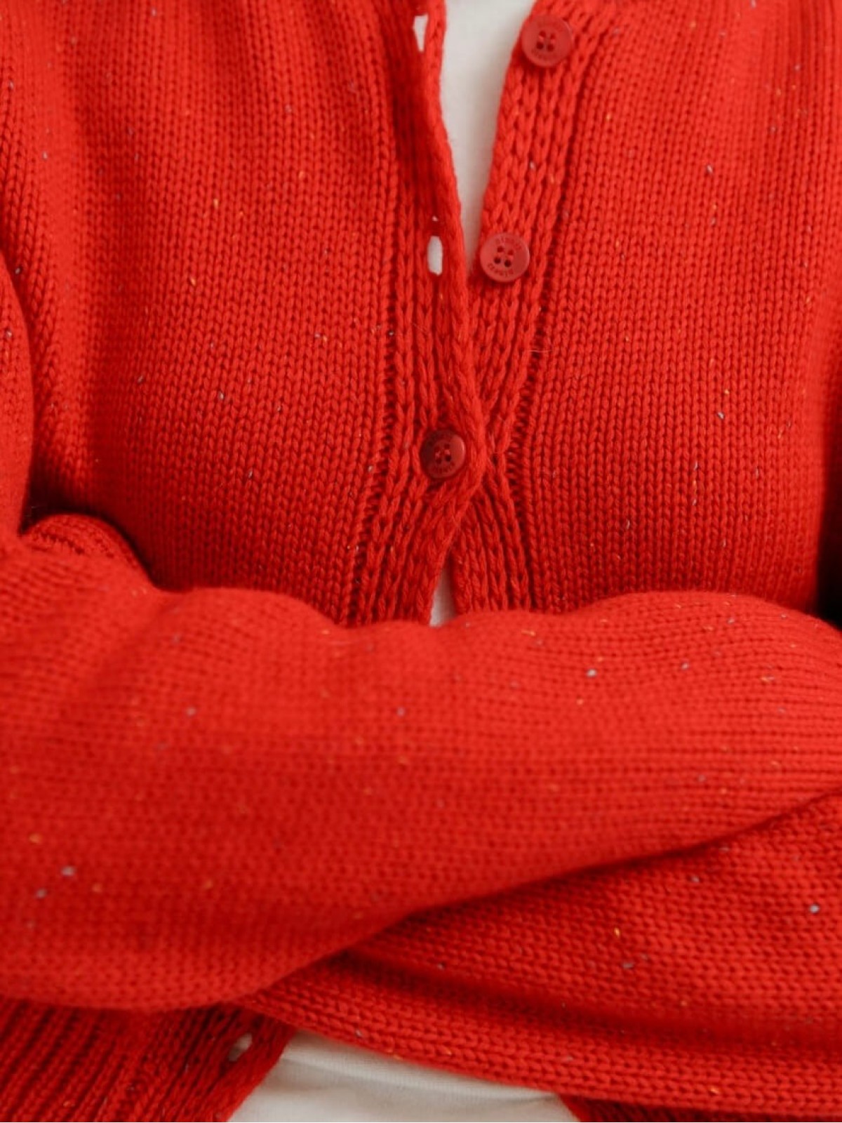 Вязаный кардиган на пуговицах в красном цвете с цветным вплетением