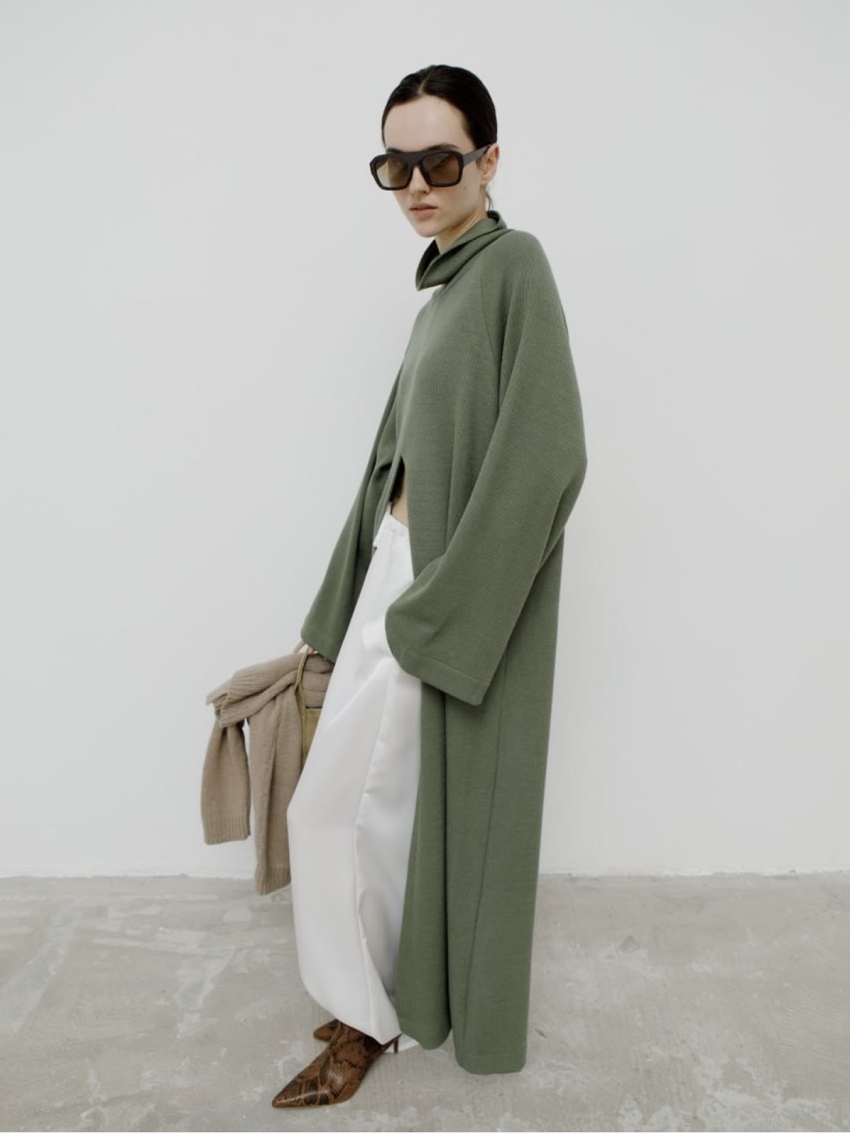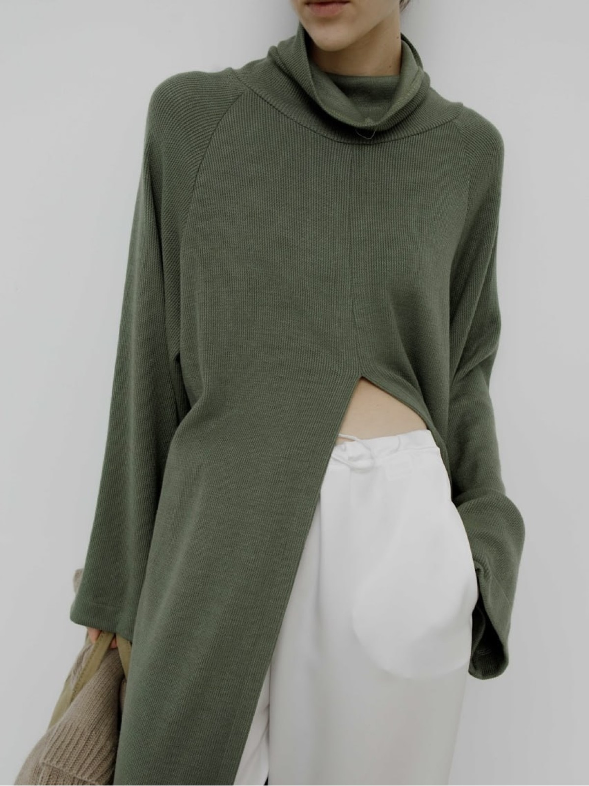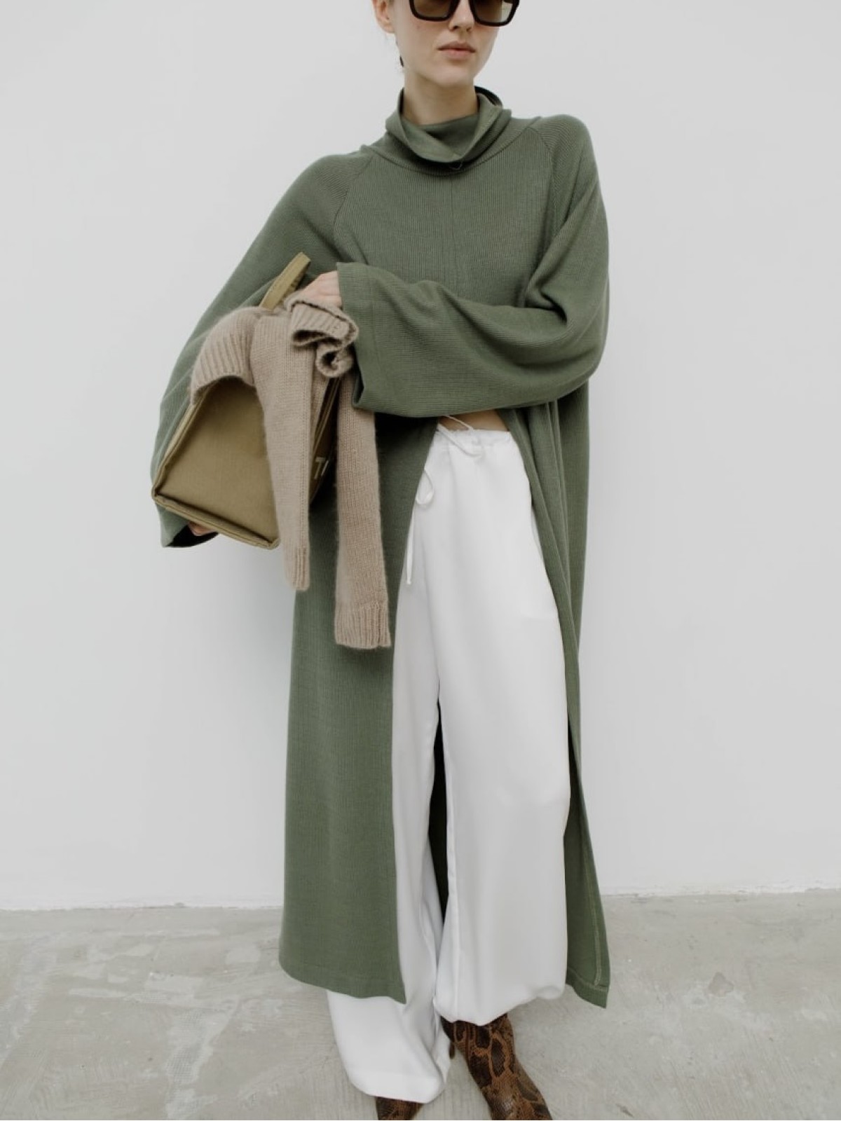 Новинка осенней коллекции бренда — удлиненный свитер с акцентным разрезом из мягкой и уютной трикотажной ткани