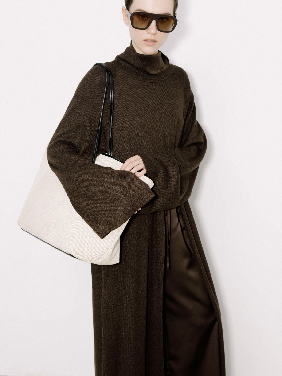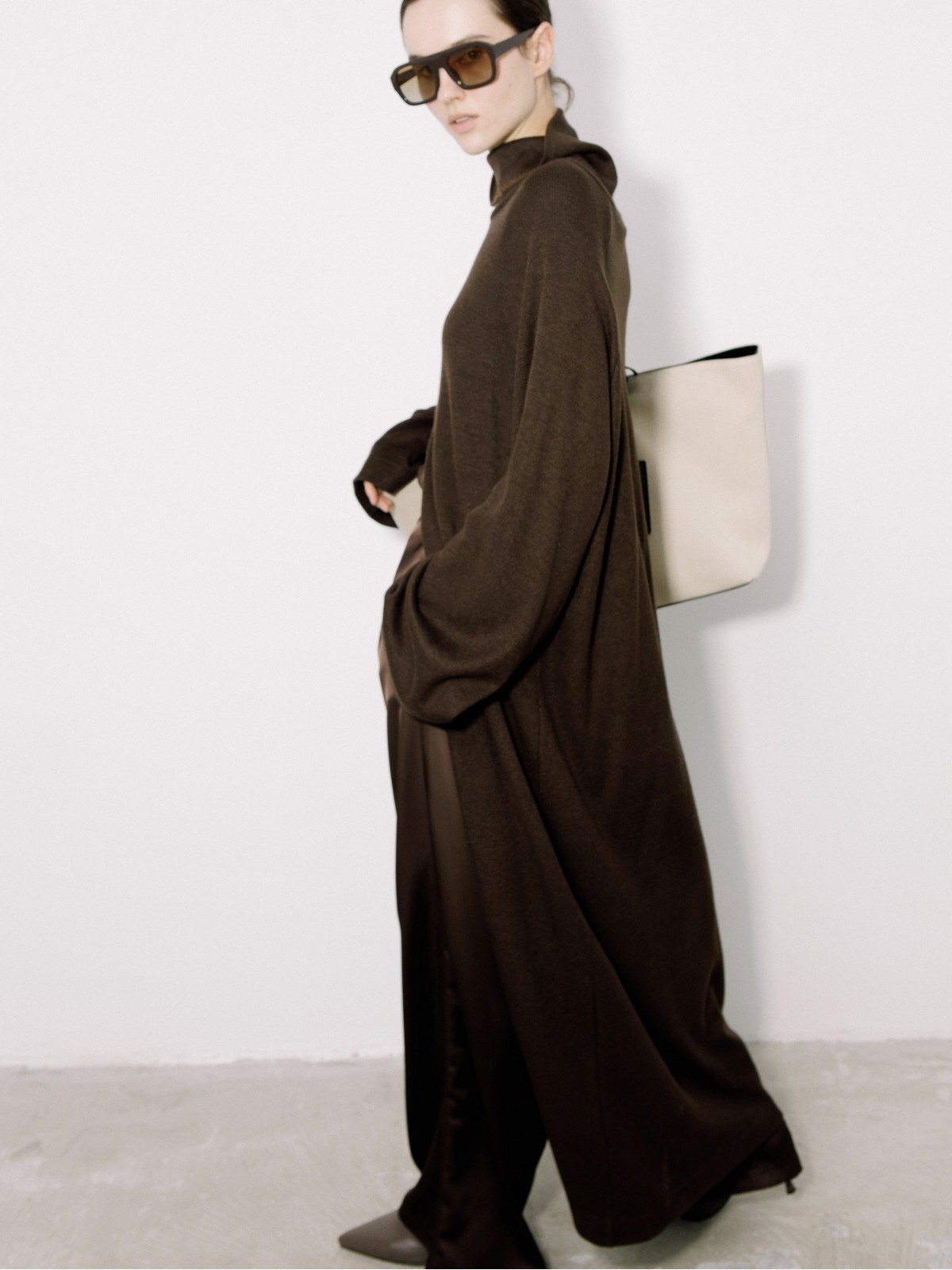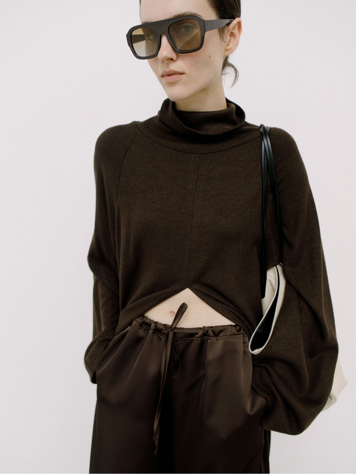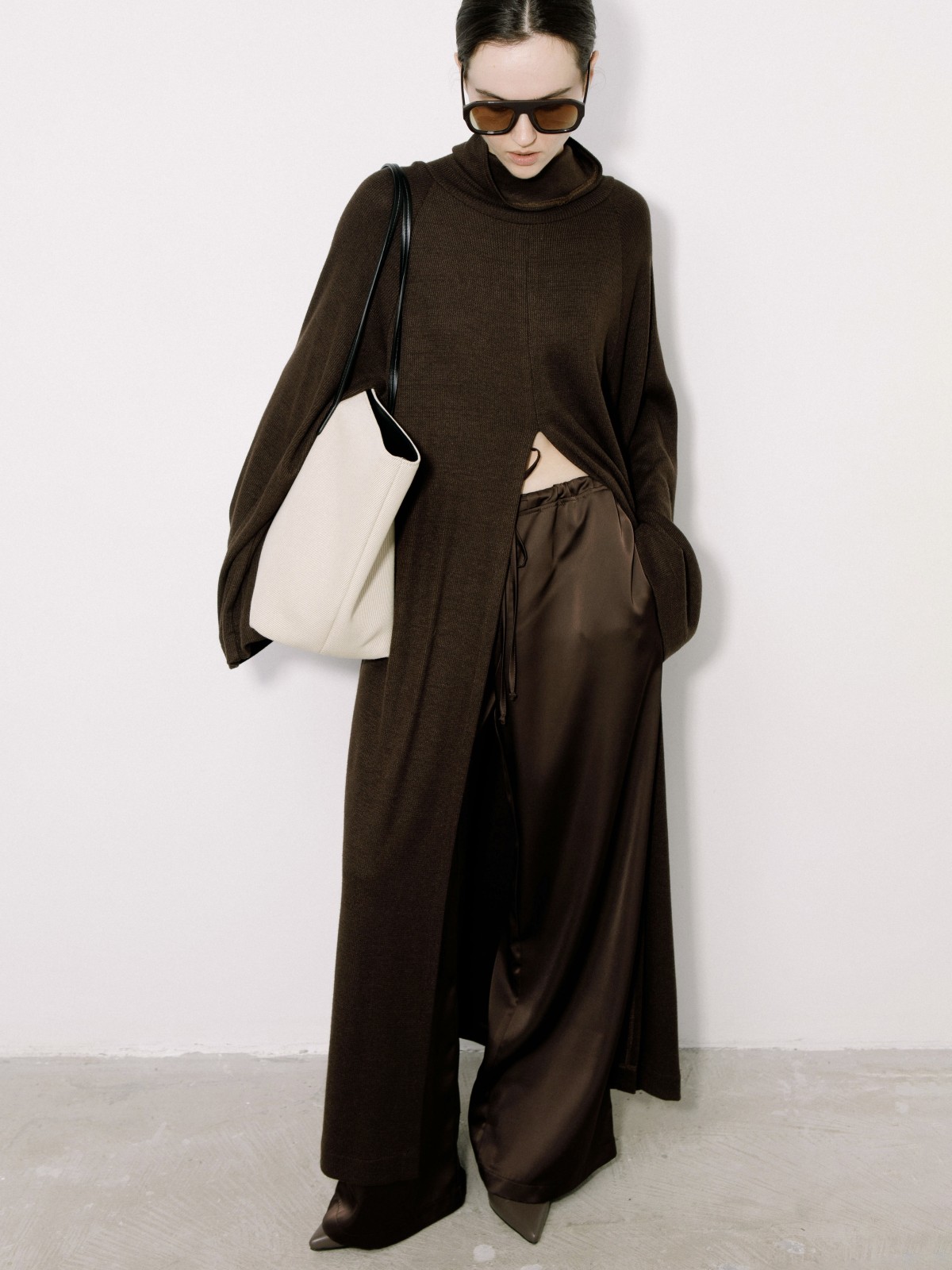 Новинка осенней коллекции бренда — удлиненный свитер с акцентным разрезом из мягкой и уютной трикотажной ткани