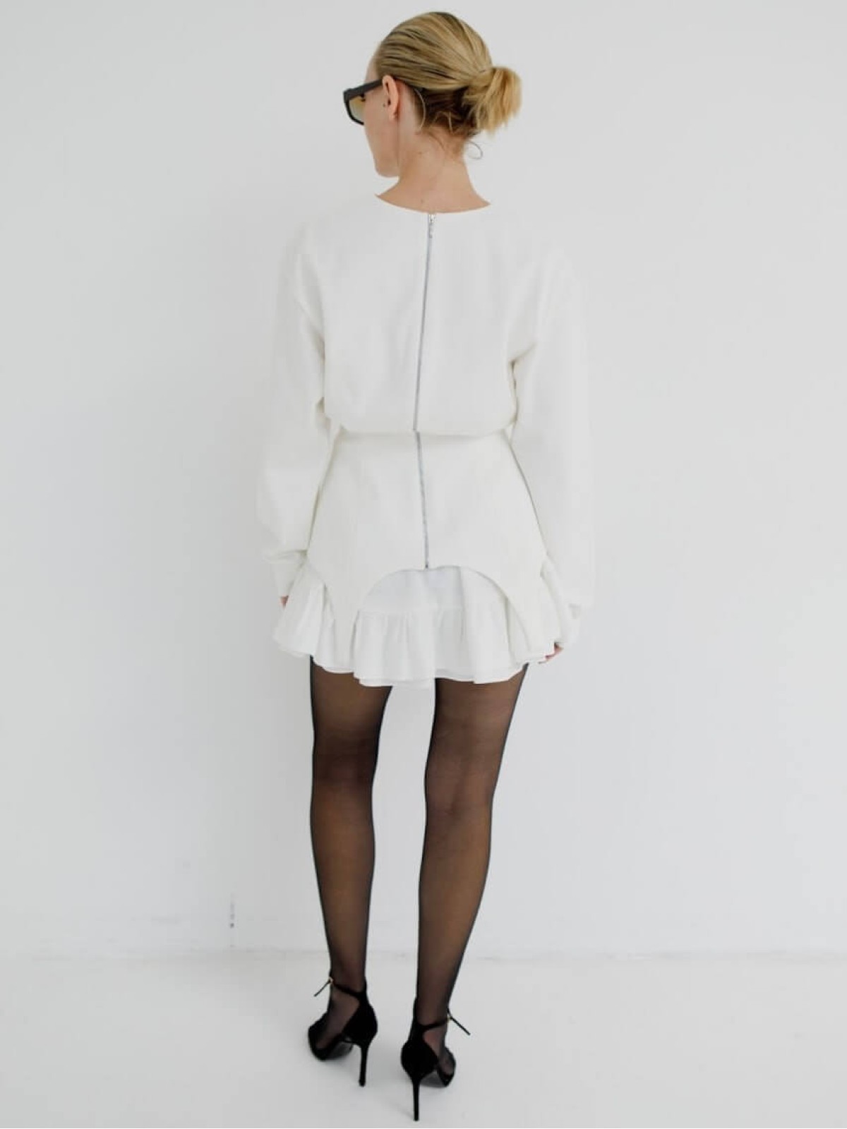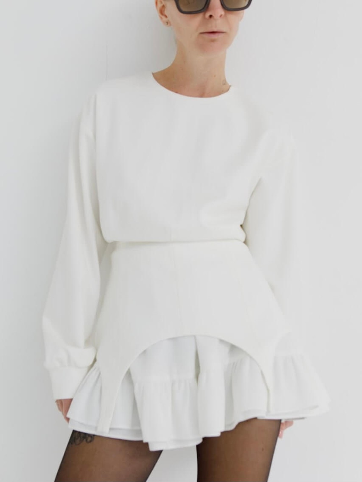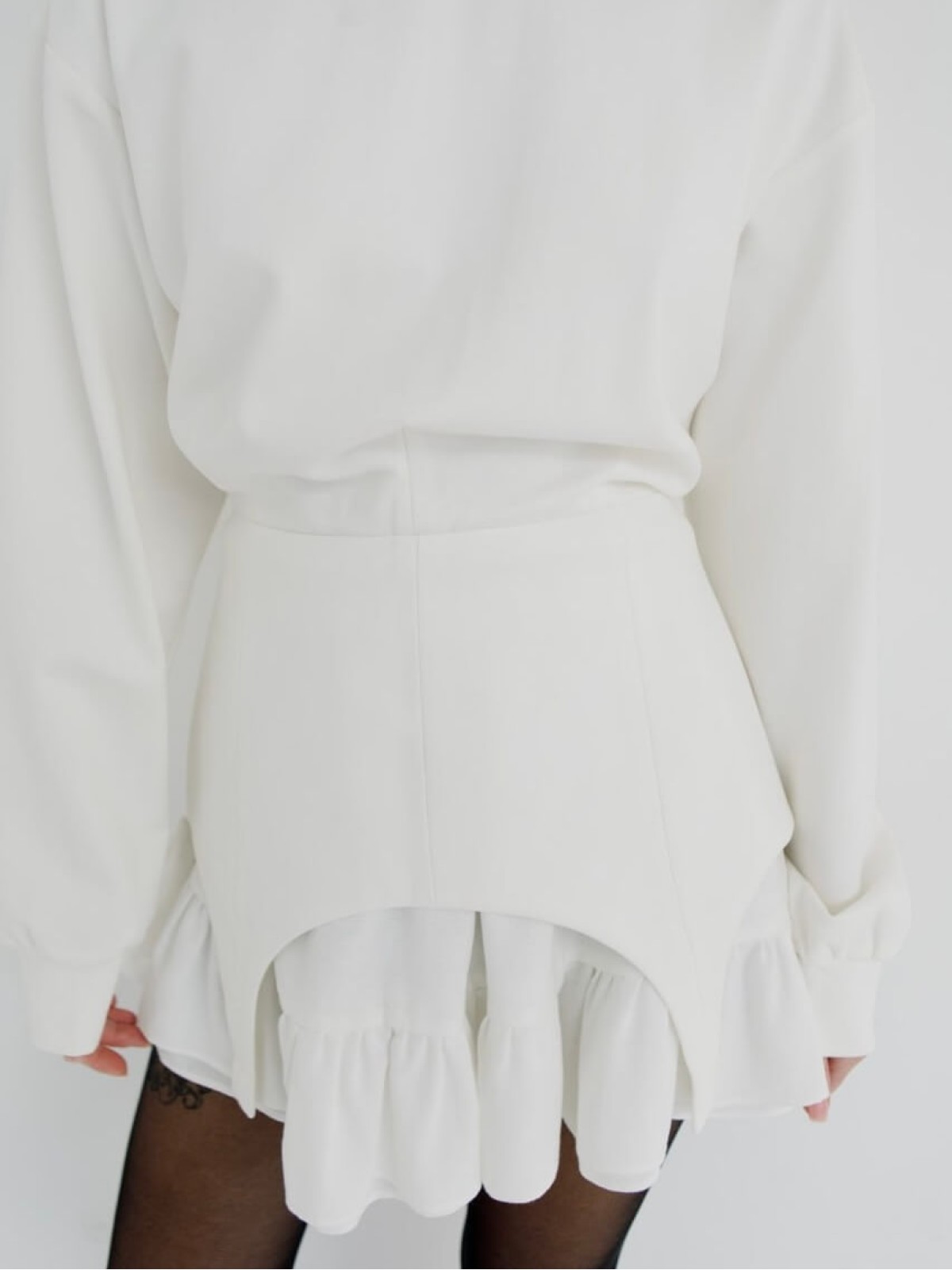 Свитшот с ассиметричным низом и замком по всей длине сзади, который можно комбинировать с остальными вещами в гардеробе, создавая образы под разное настроение. Идеальное дополнение к юбкам, джинсам и брюкам.