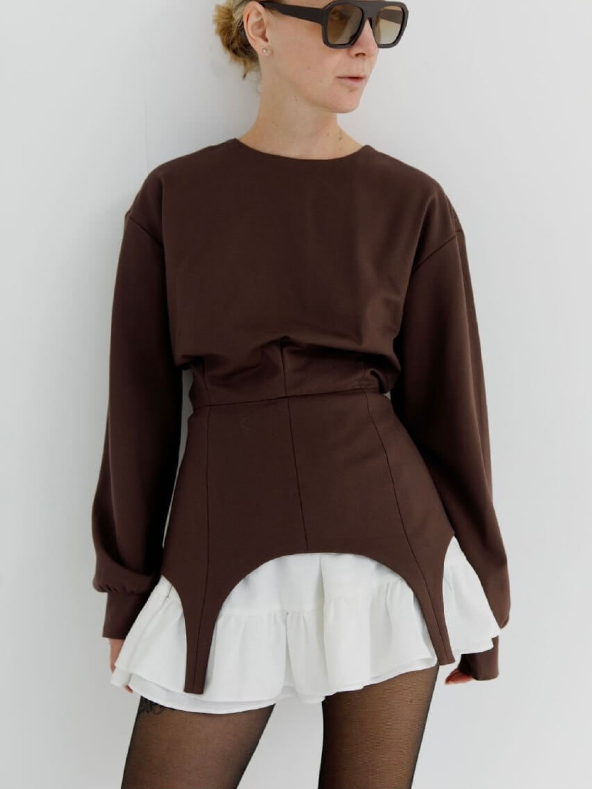 Свитшот с ассиметричным низом и замком по всей длине сзади, который можно комбинировать с остальными вещами в гардеробе, создавая образы под разное настроение. Идеальное дополнение к юбкам, джинсам и брюкам.