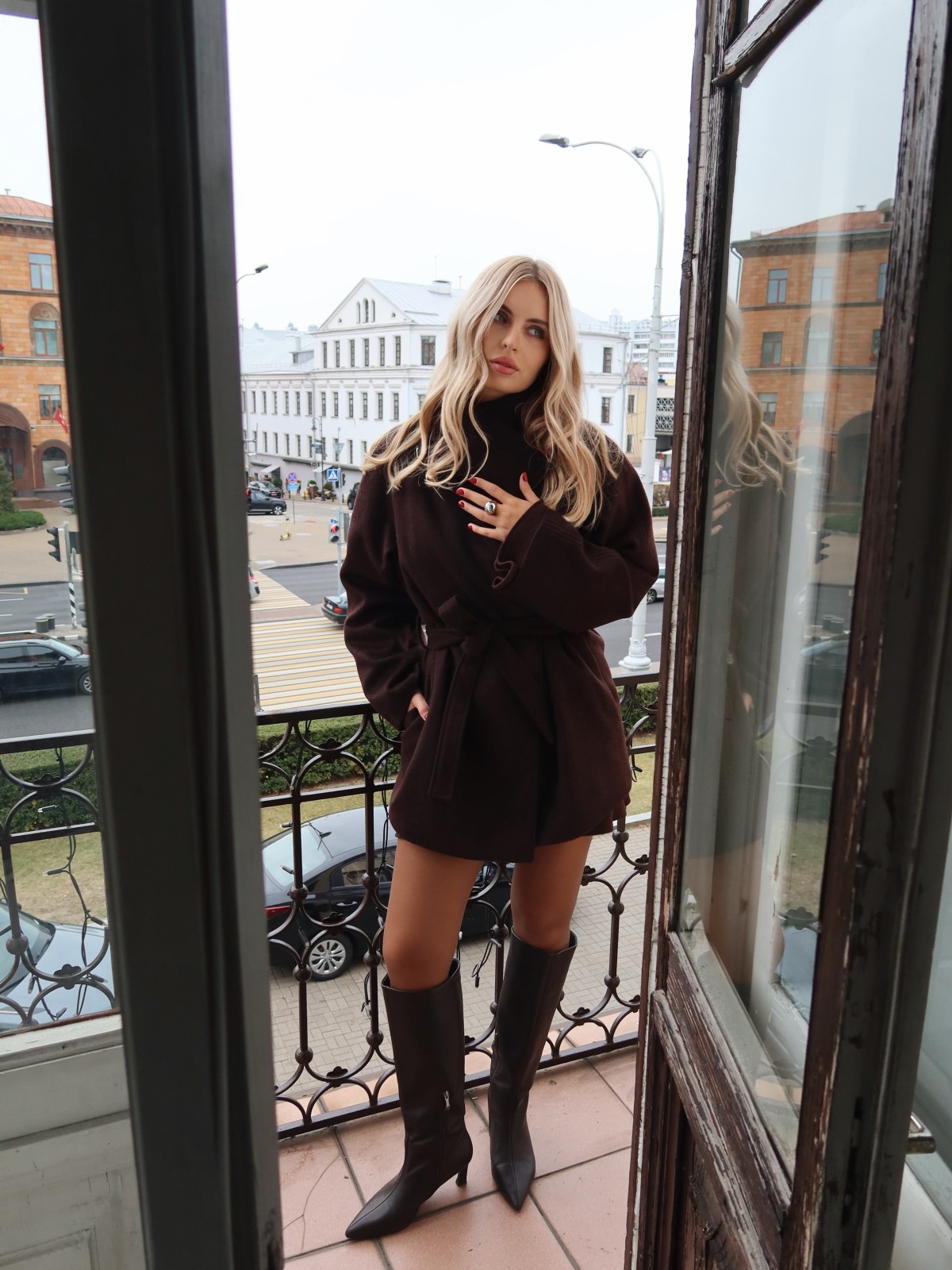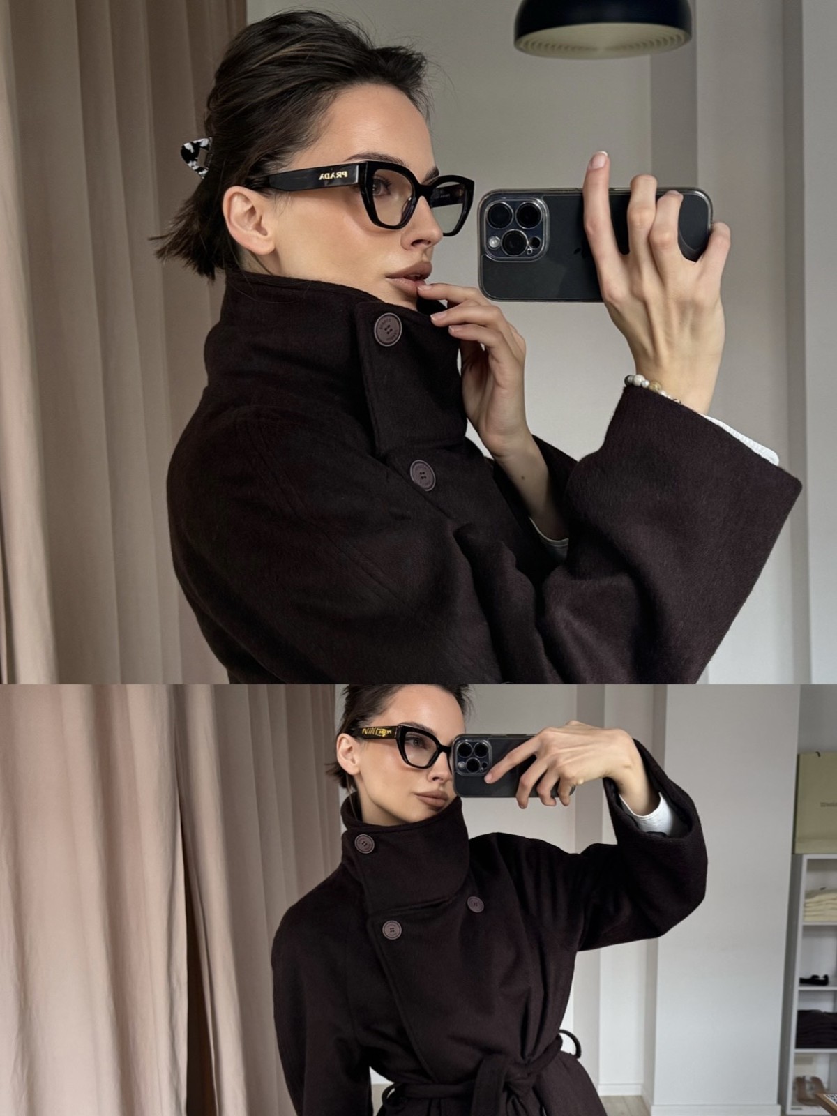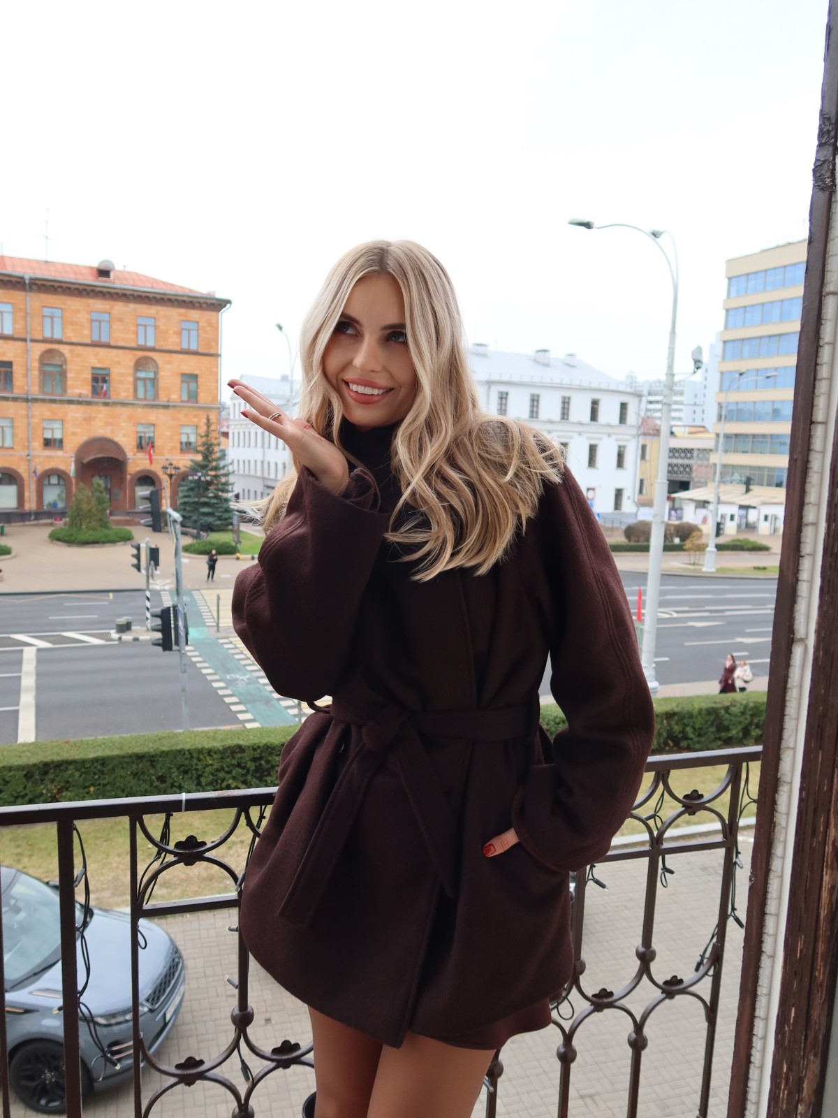 Бестселлер бренда в холодный сезон — двубортное укороченное пальто UNDER в трендовом шоколадном цвете.