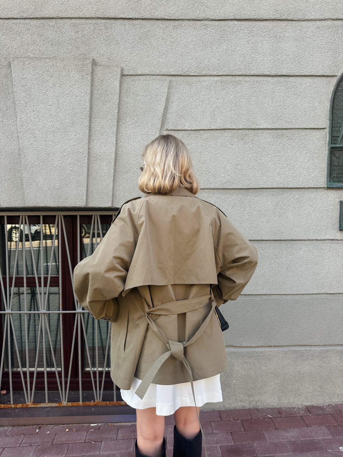 Новинка осенней коллекции бренда — тренч CROP в цвете хаки.