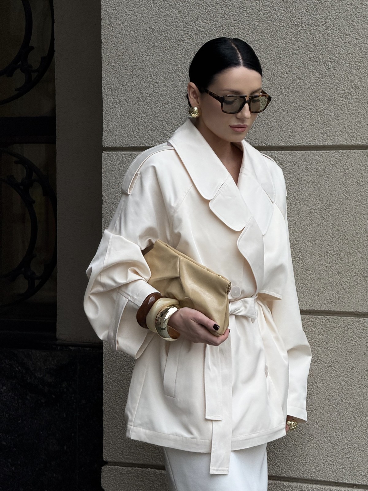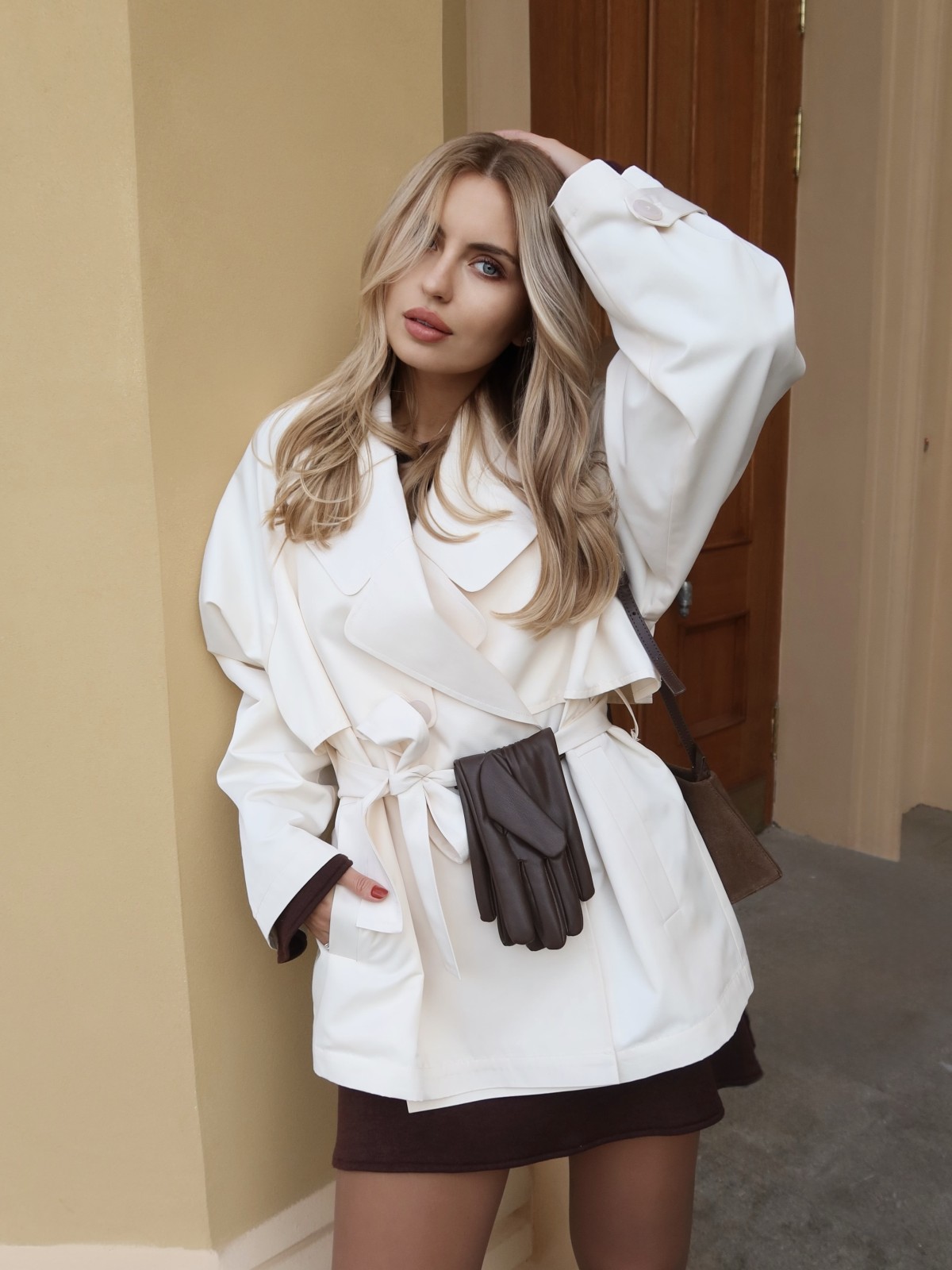 Новинка осенней коллекции бренда — тренч CROP в молочном цвете.