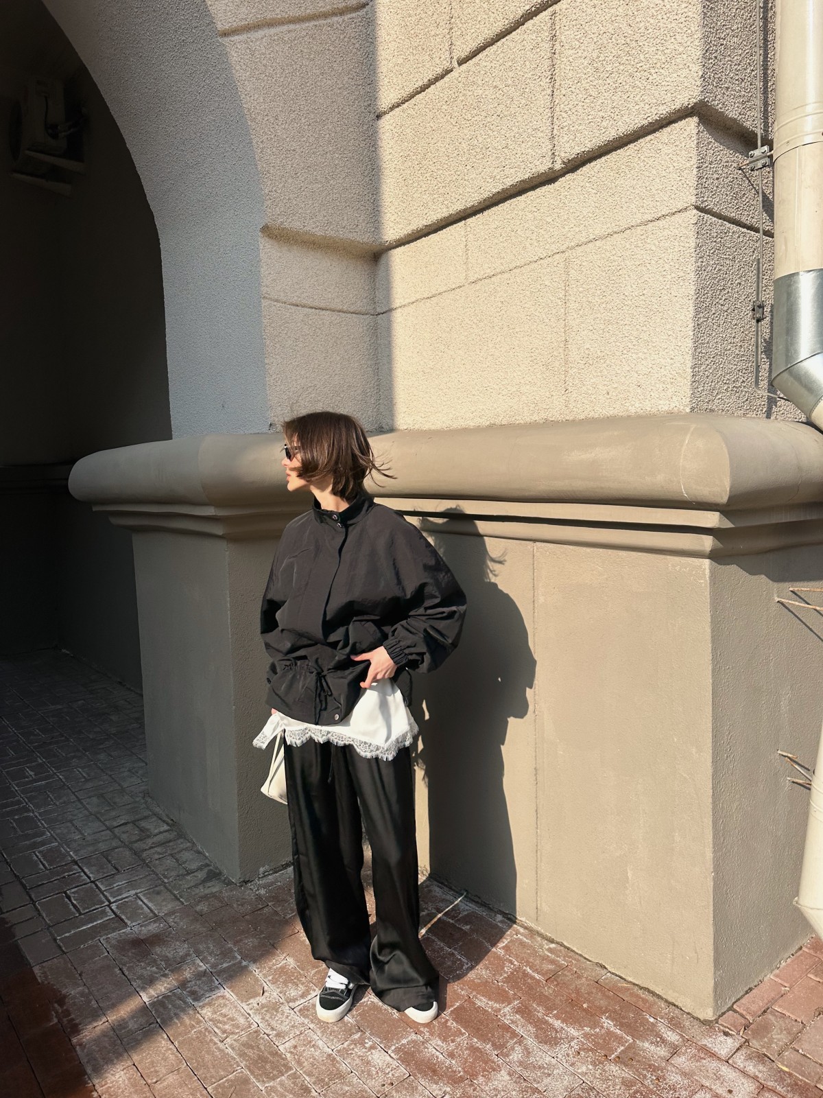 Ветровка легко вписывается в повседневные образы: с брюками, джоггерами, юбками и трикотажными комплектами. Минималистичный дизайн делает её базой, к которой хочется возвращаться.