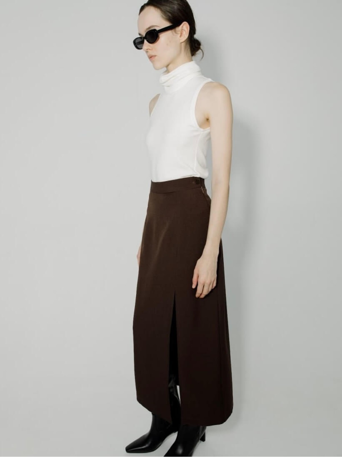 Юбка миди в цвете шоколад с разрезом — новая интерпретация классики.