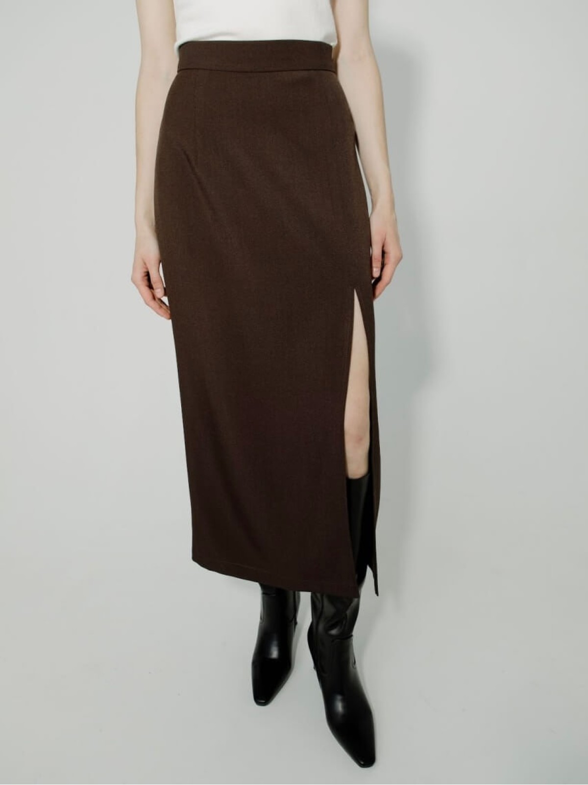 Прямой крой визуально вытягивает силуэт, а высокий разрез спереди добавляет динамику и женственность. Ткань держит форму, при этом оставаясь комфортной для повседневной носки.
