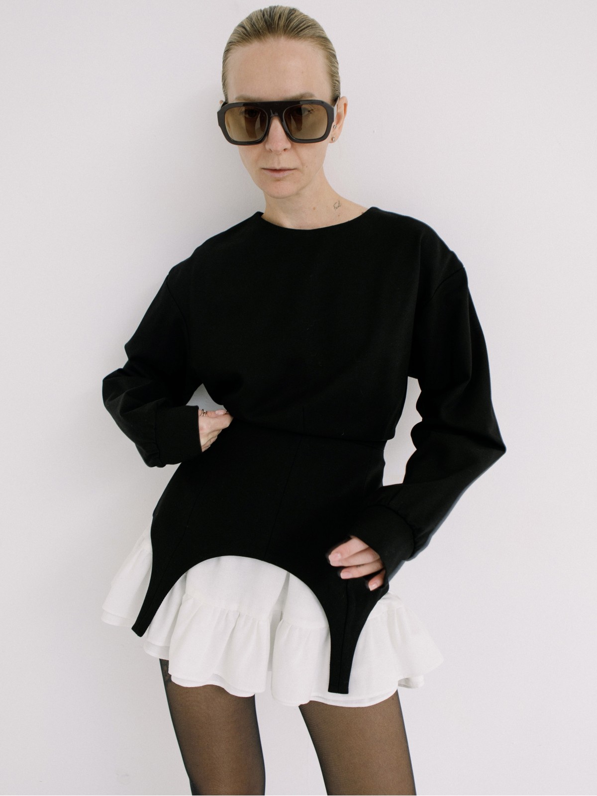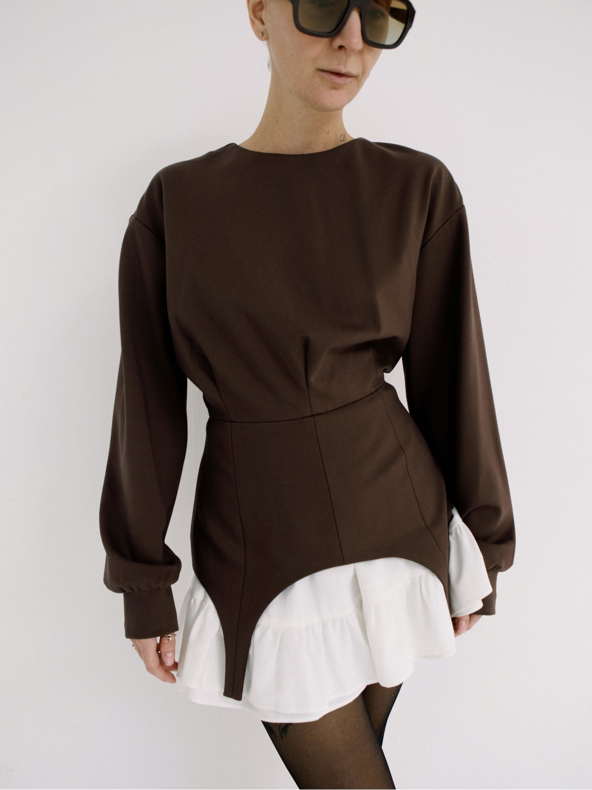 Самостоятельное изделие и элемент платья в комбинации со свитшотом или корсетом.